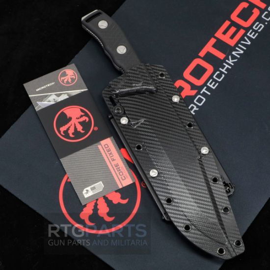 Microtech Arbiter, Fixed Blade Knife, 8.75 Inch, Serrated, Apocalyptic, Carbon Pattern Kydex Sheath, 5.6 Inch Handle with G10 Scales, Full Tang, M390, Combat Knife, Made in the USA, 104-11AP