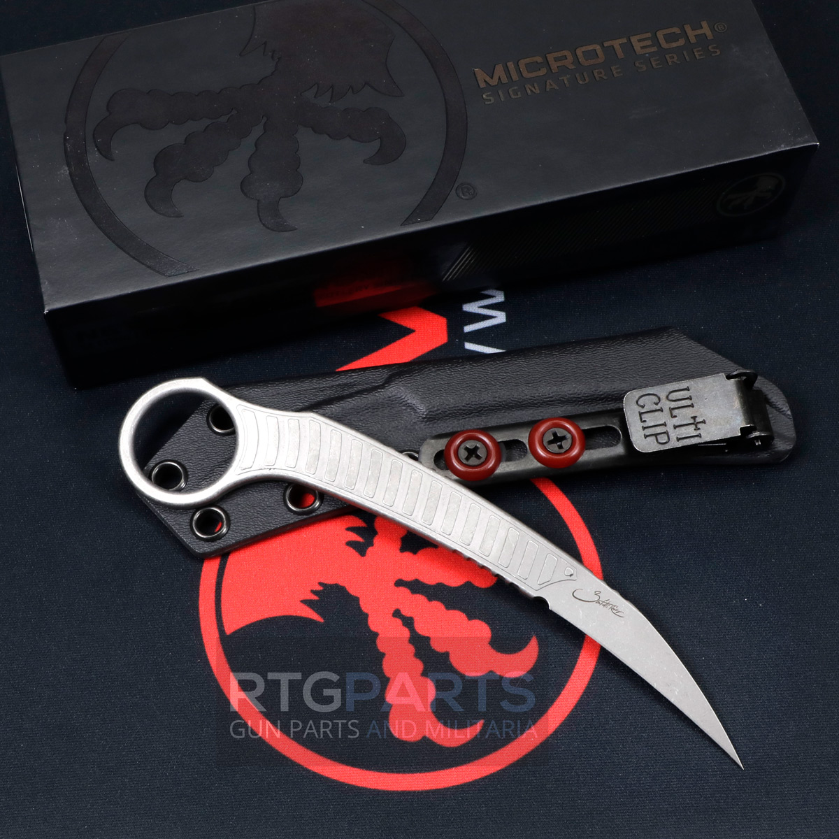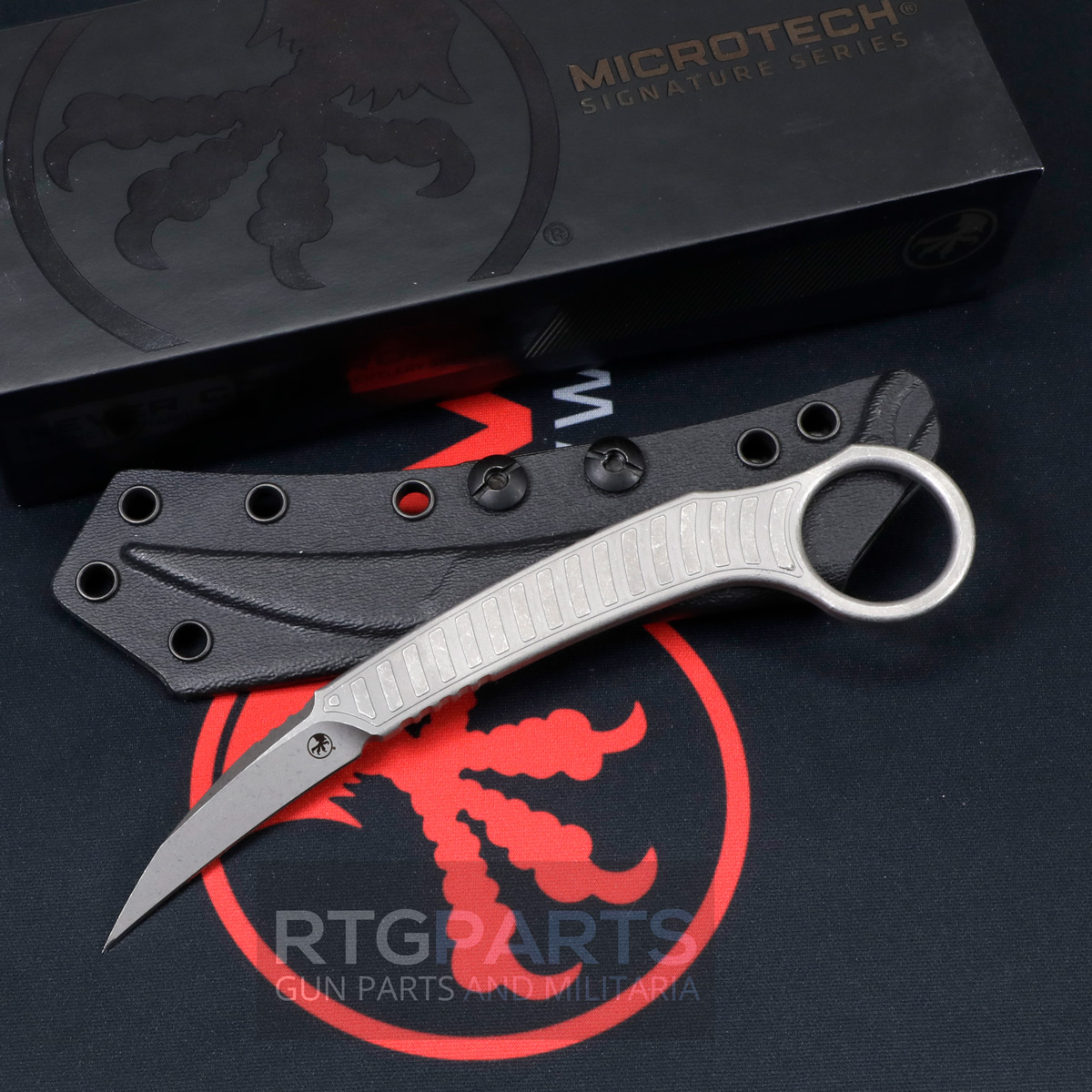 Microtech Knives, Feather Fixed Blade Knife, Black, (2.25 Inch) M390, Apocalyptic, Sheath, Designed by Bastinelli Knives, Made in the USA, 215-10APS