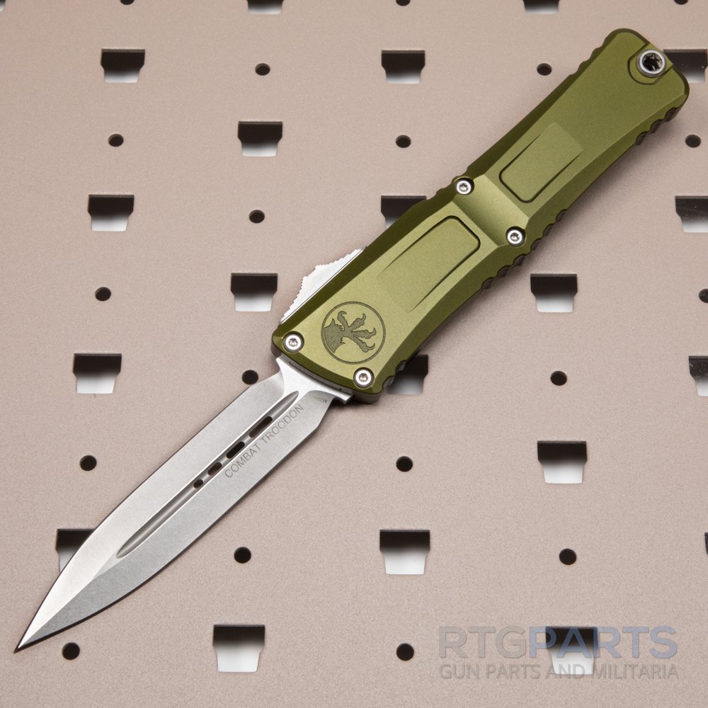 Microtech Combat Troodon Gen III, D/E OTF, Automatic Knife, OD Green, Stonewash, (4.00 Inch), Double Edge, Dagger, M390MK, Made in the USA, 1142-10OD