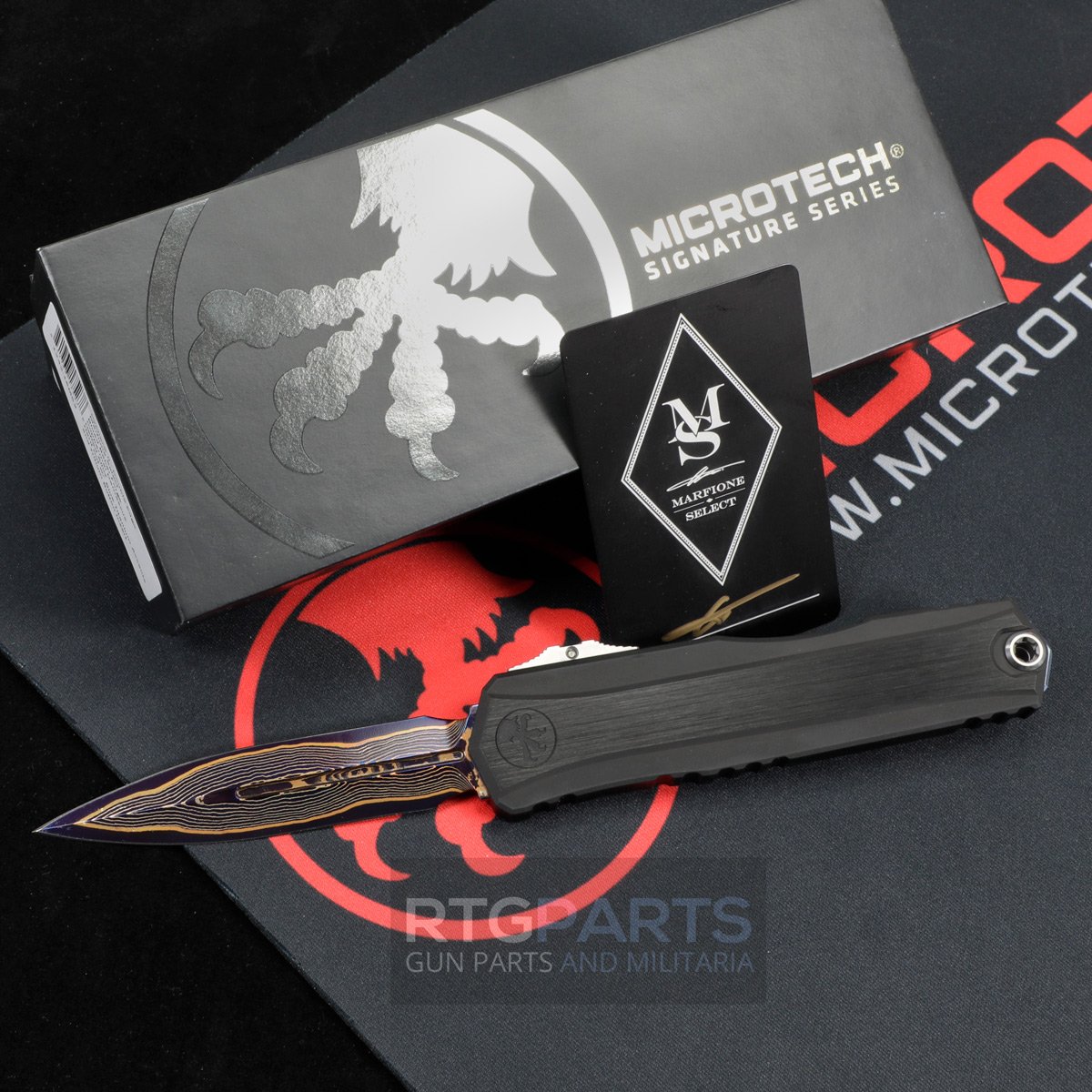 Microtech, Marfione Select, Cypher II, D/E OTF, Automatic Knife, Blued Baker Forge Coppermai Damascus, Hefted Alloy, Hard Cut w/ Blue Titanium Accents and Tritium Button Insert, Made in the USA, 1242-16MS2