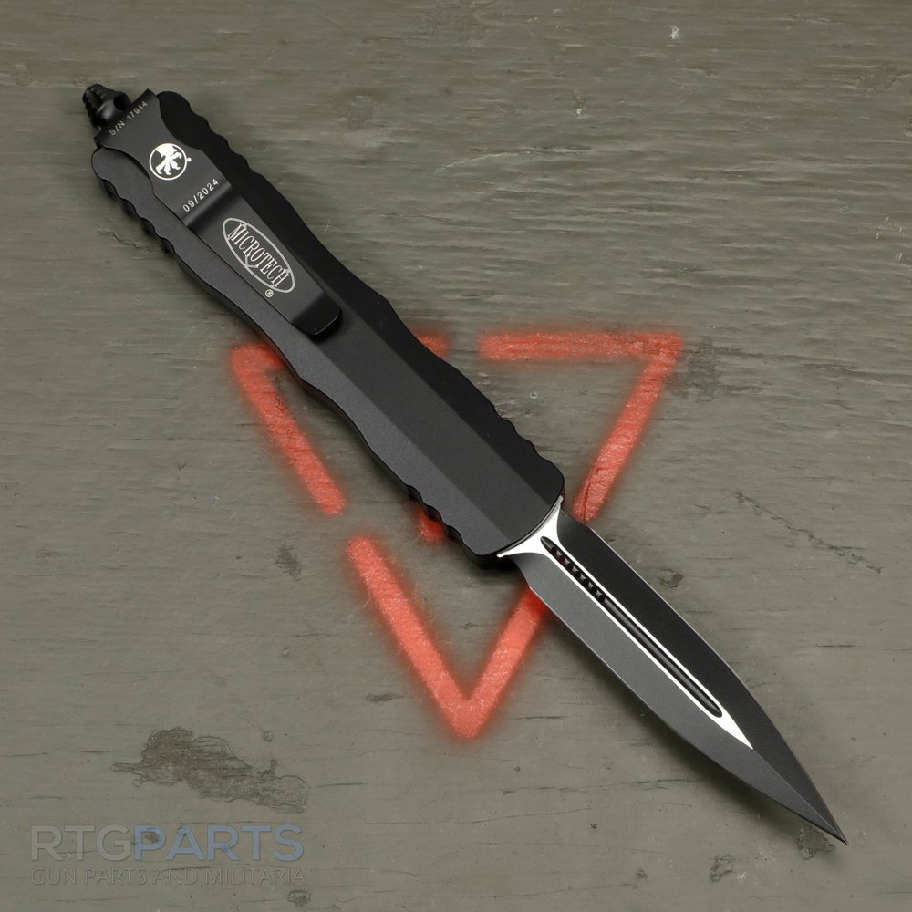 Microtech Dirac, D/E OTF, Automatic Knife, Black, 2.9 Inch, Tactical Black, M390, Double Edge, Dagger, 100% Made in the USA, 225-1T