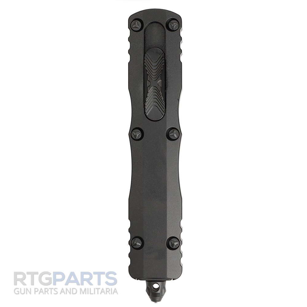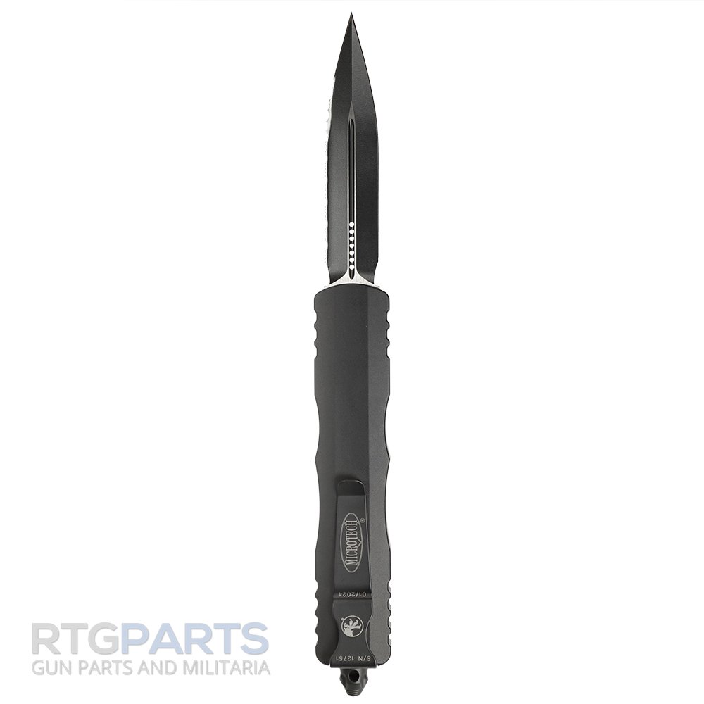 Microtech Dirac Delta, D/E OTF, Automatic Knife, Black, 3.75 Inch, Tactical, M390, Double Edge, Serrated, Dagger, 100% Made in the USA, 227-3T