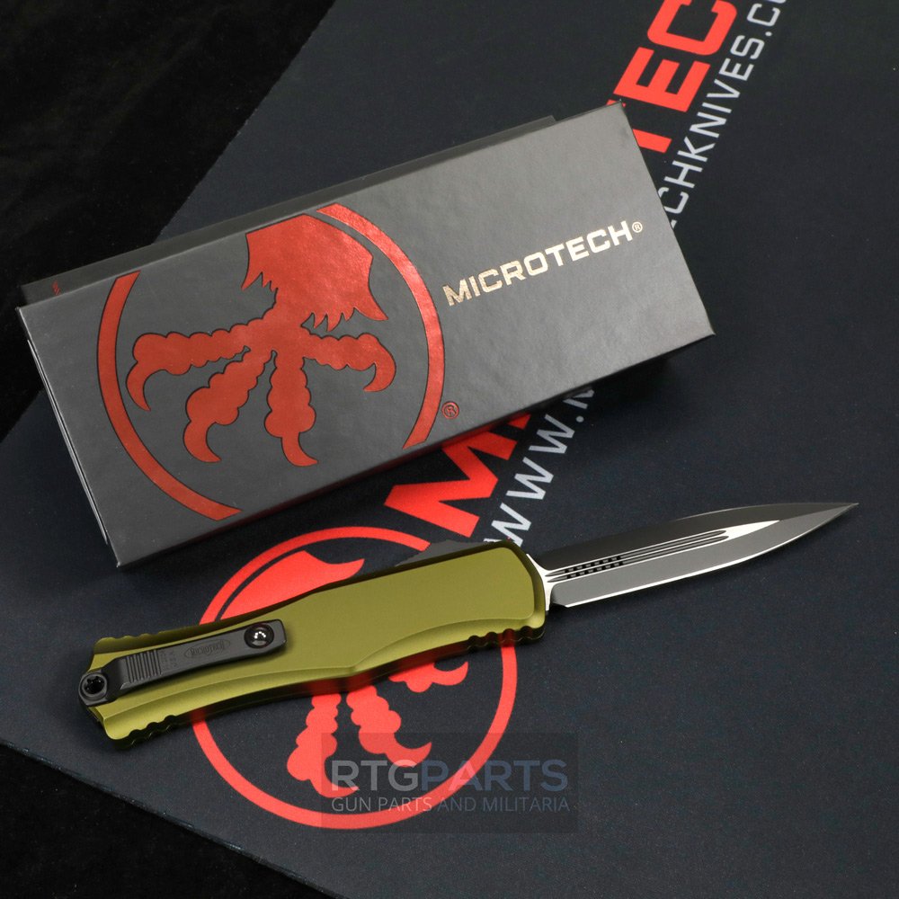 Microtech Hera II, D/E OTF, Automatic Knife, OD Green, Dagger, Double Edge, 4 Inch, Black Blade, 100% Made in the USA, 1702-1OD