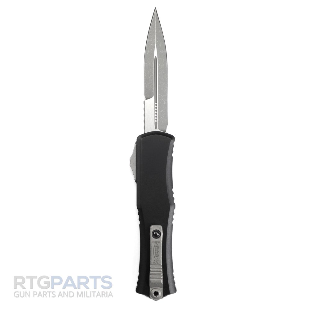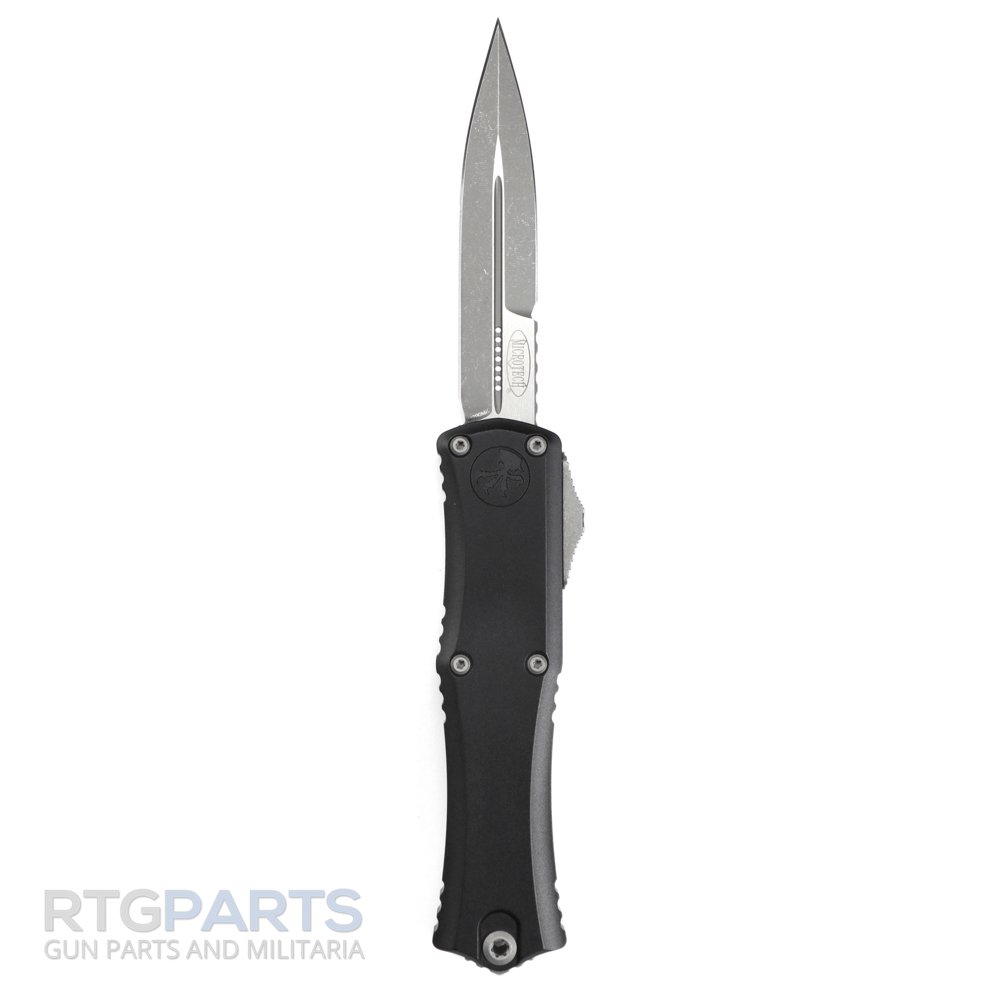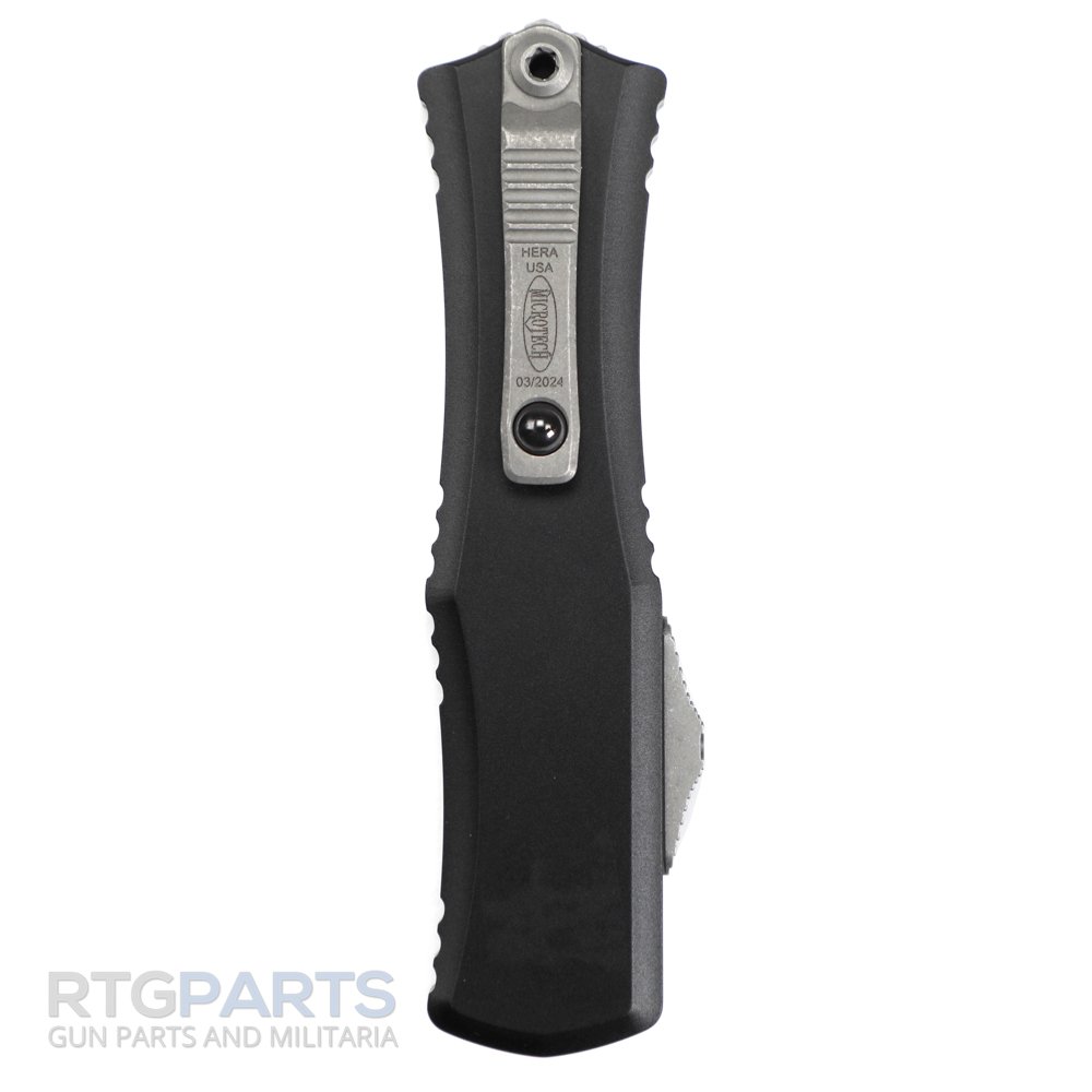 Microtech Hera II Mini, OTF, Automatic Knife, Black, 3 Inch, Double Edge, Bayonet, Apocalyptic, Titanium Clip, 100% Made in the USA, 1701M-10AP