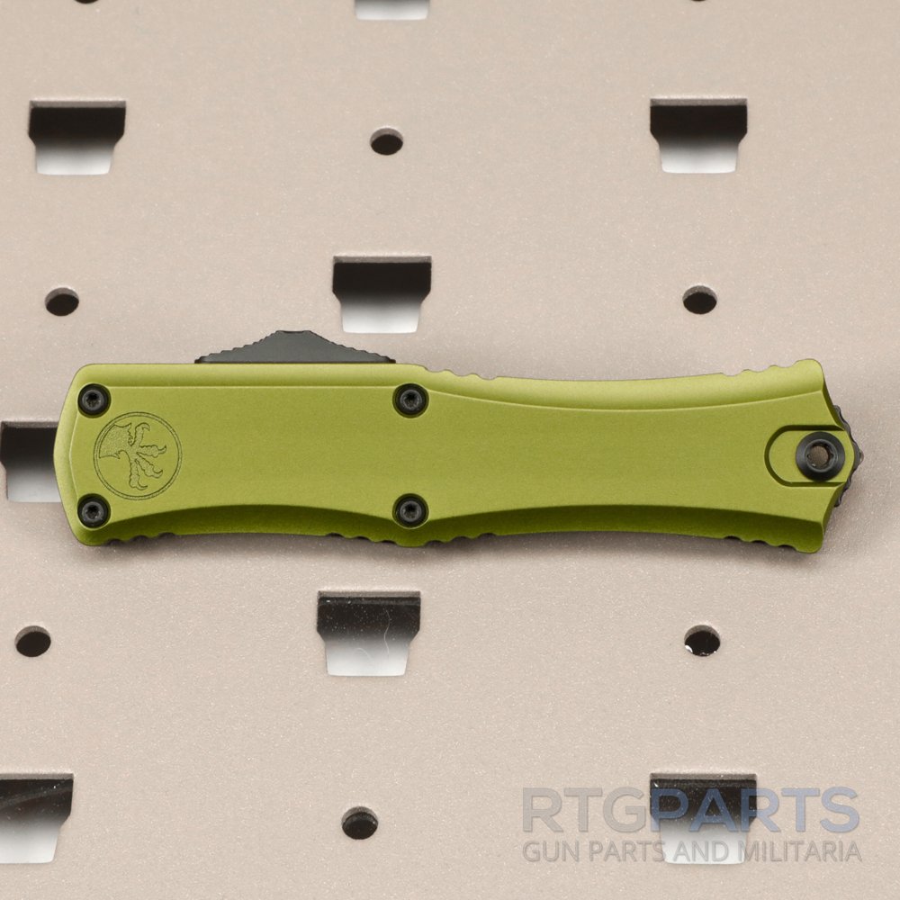 Microtech Hera II Mini, OTF, Automatic Knife, OD Green, 3 Inch, Double Edge, Bayonet, Black Blade, Titanium Clip, 100% Made in the USA, 1701M-1OD