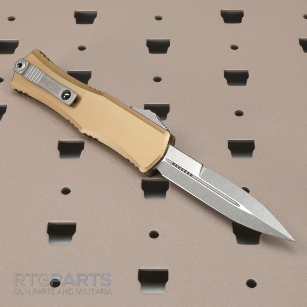Microtech Hera II Mini, OTF, Automatic Knife, TAN, 3 Inch, Double Edge, Bayonet, Apocalyptic, Titanium Clip, 100% Made in the USA, 1701M-10APTA