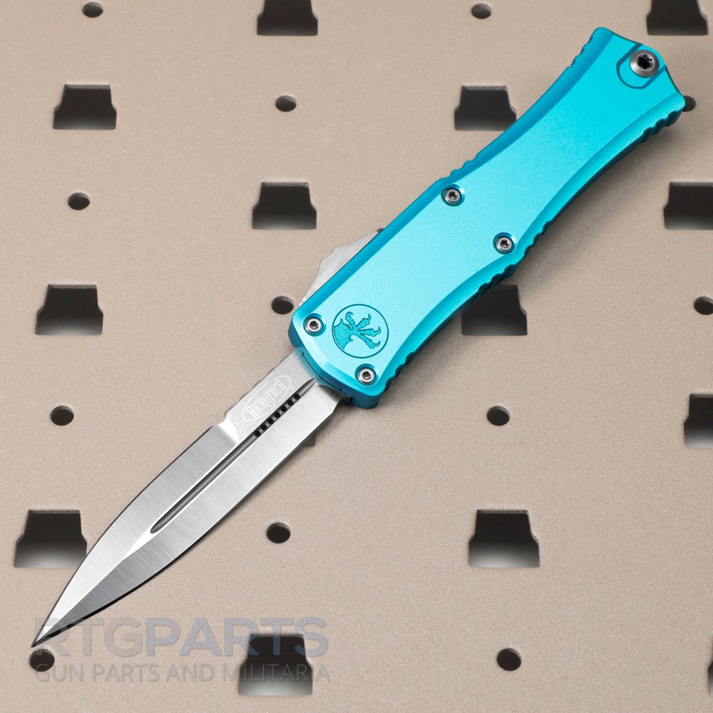 Microtech Hera II Mini, OTF, Automatic Knife, Turquoise, 3 Inch, Double Edge, Bayonet, Satin, Titanium Clip, 100% Made in the USA, 1701M-4TQ