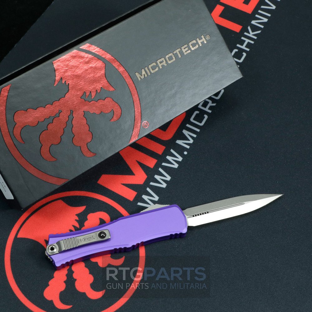 Microtech Hera II Mini, OTF, Automatic Knife, Purple, 3 Inch, Double Edge, Dagger, Stonewash, Titanium Clip, 100% Made in the USA, 1702M-10PU