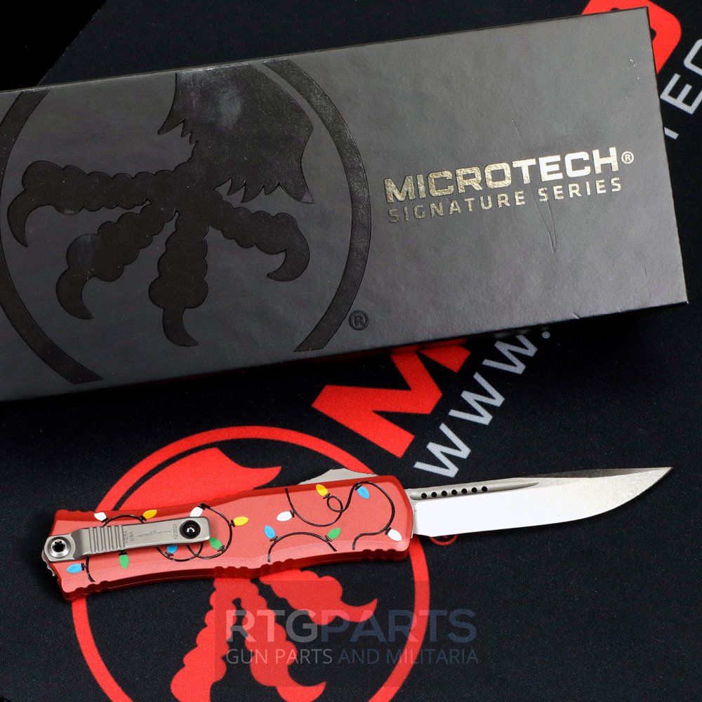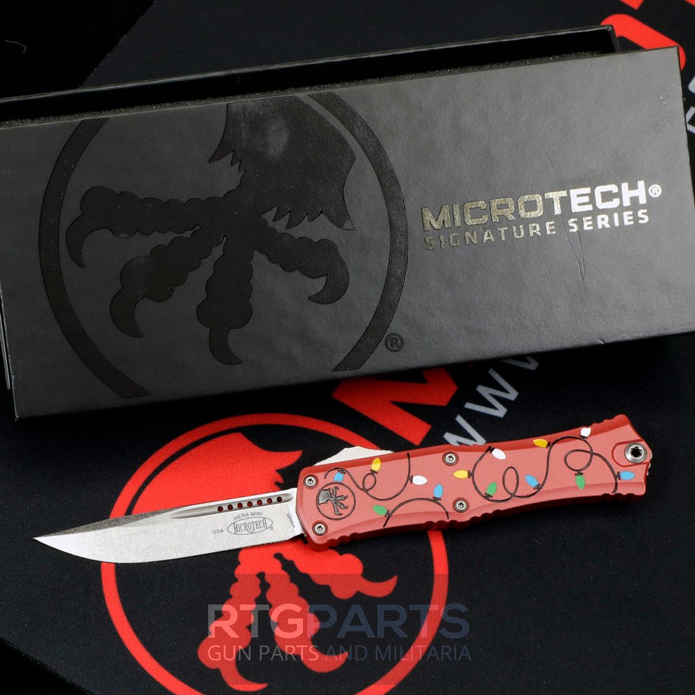 Microtech Hera II Mini, OTF, Automatic Knife, Christmas Red, Limited Edition, Signature Series, 3 Inch, Single Edge, Stonewash, Titanium Clip, 100% Made in the USA, 1703M-10RDCMAS