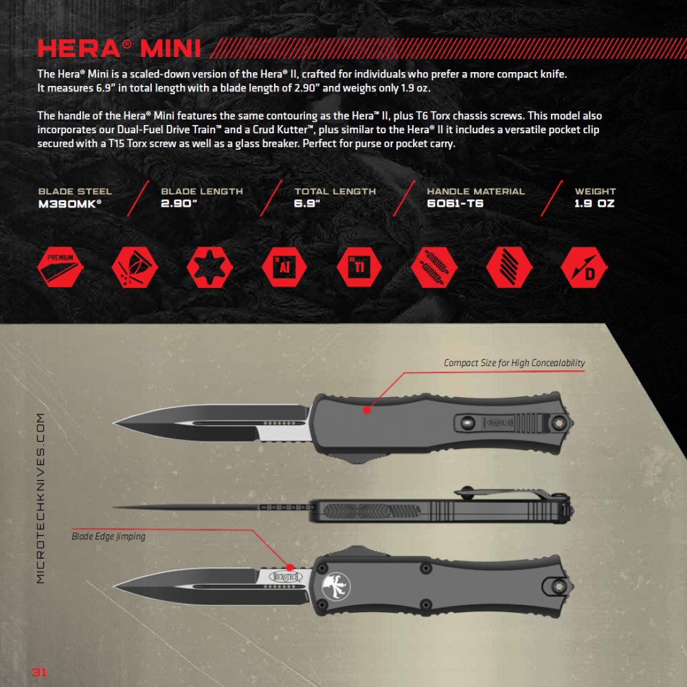 Microtech Hera II Mini, OTF, Automatic Knife, Tan, 3 Inch, Single Edge, Recurve, Black Blade, Titanium Clip, 100% Made in the USA, 1705M-1TA