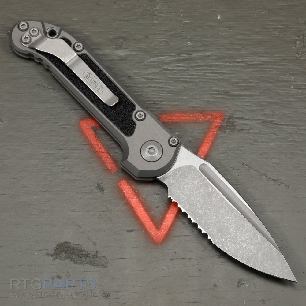 Microtech LUDT, L.U.D.T., S/E, Auto Knife, Push Button Automatic, Natural Clear, 3.5 Inch, Drop Point, Serrated, M390MK, Large, Underwater Demolition Team, Made in the USA, 1135-11APNC