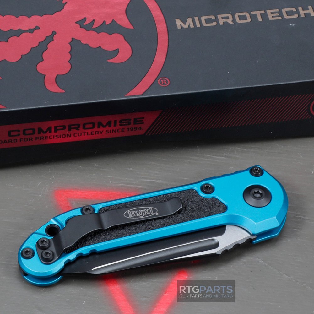 Microtech LUDT, L.U.D.T., S/E, Auto Knife, Push Button Automatic, Blue, Black Standard, 3.5 Inch, Bronze Push Button, Tanto, M390MK, Large Underwater Demolition Team, Made in the USA, 1136-1BL