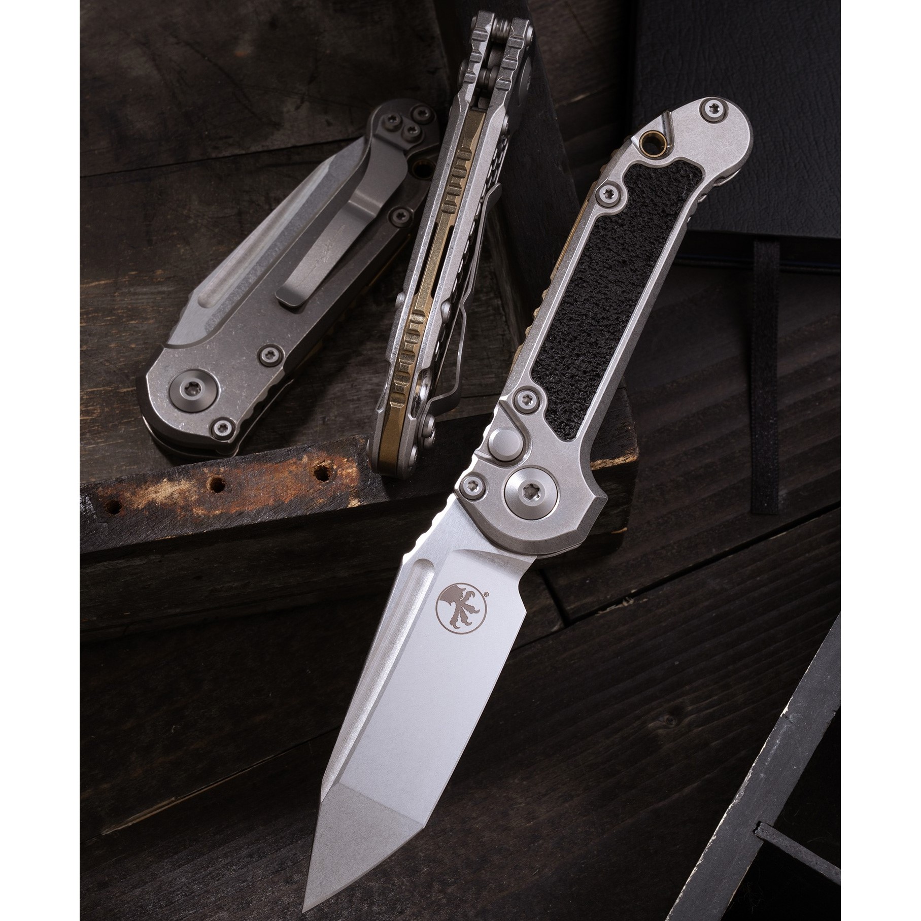 Microtech Marfione Select, L.U.D.T. Tanto Edge T/E , Auto Knife, Push Button Automatic, Titanium Slab Side Scales With Bronze Titanium Accent, Double Vapor Blast Stainless, 3.5 Inch, Tanto, M390MK, Large Underwater Demolition Team, Made in the USA, 1136-10MS1