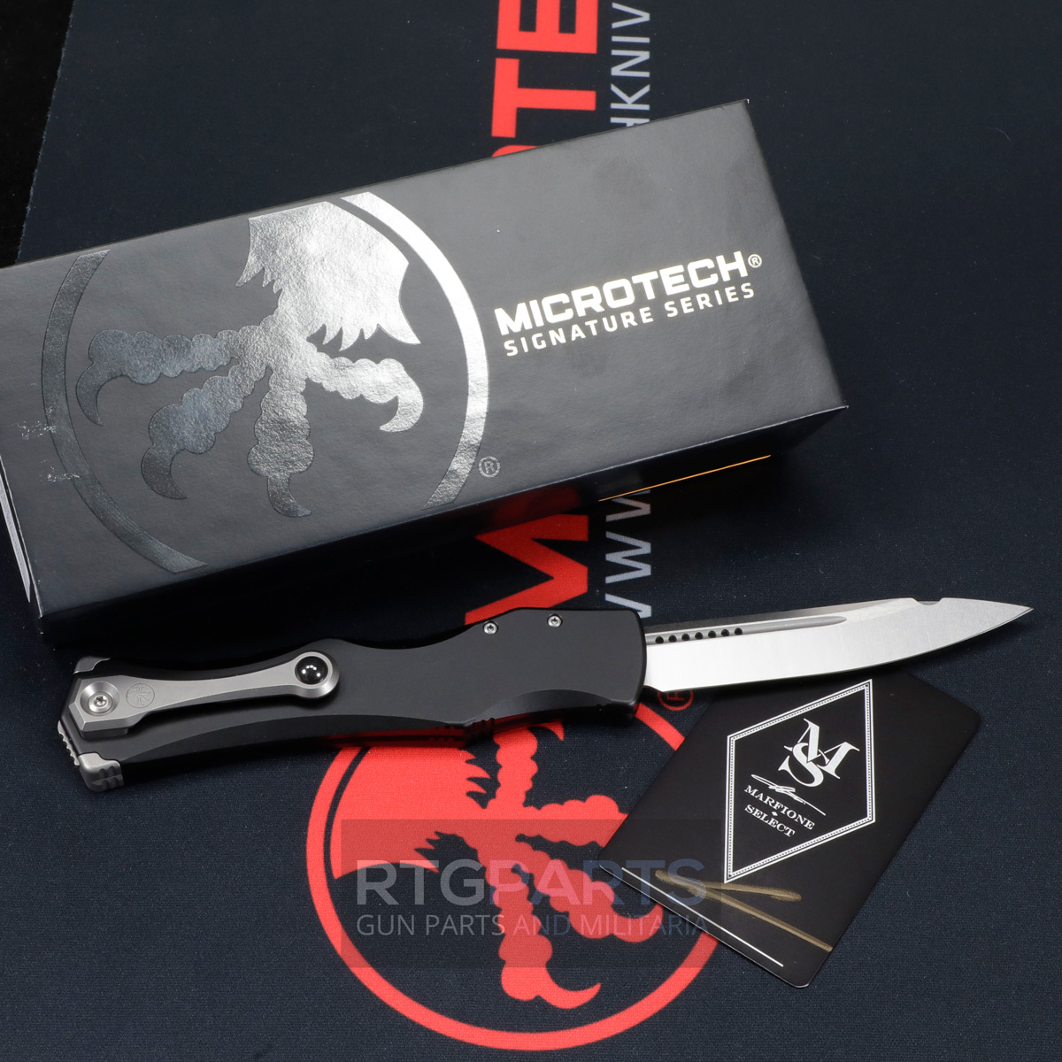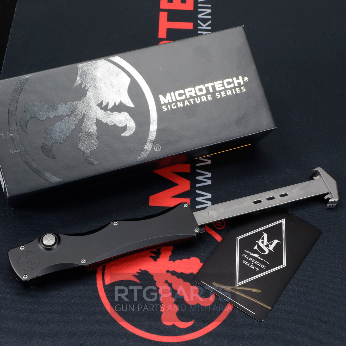 Microtech Marfione Select, Halo IV, Single Action Auto, Black Handle, 3.8" Clip Point, Stonewash, Made in the USA, 1150-10MS1