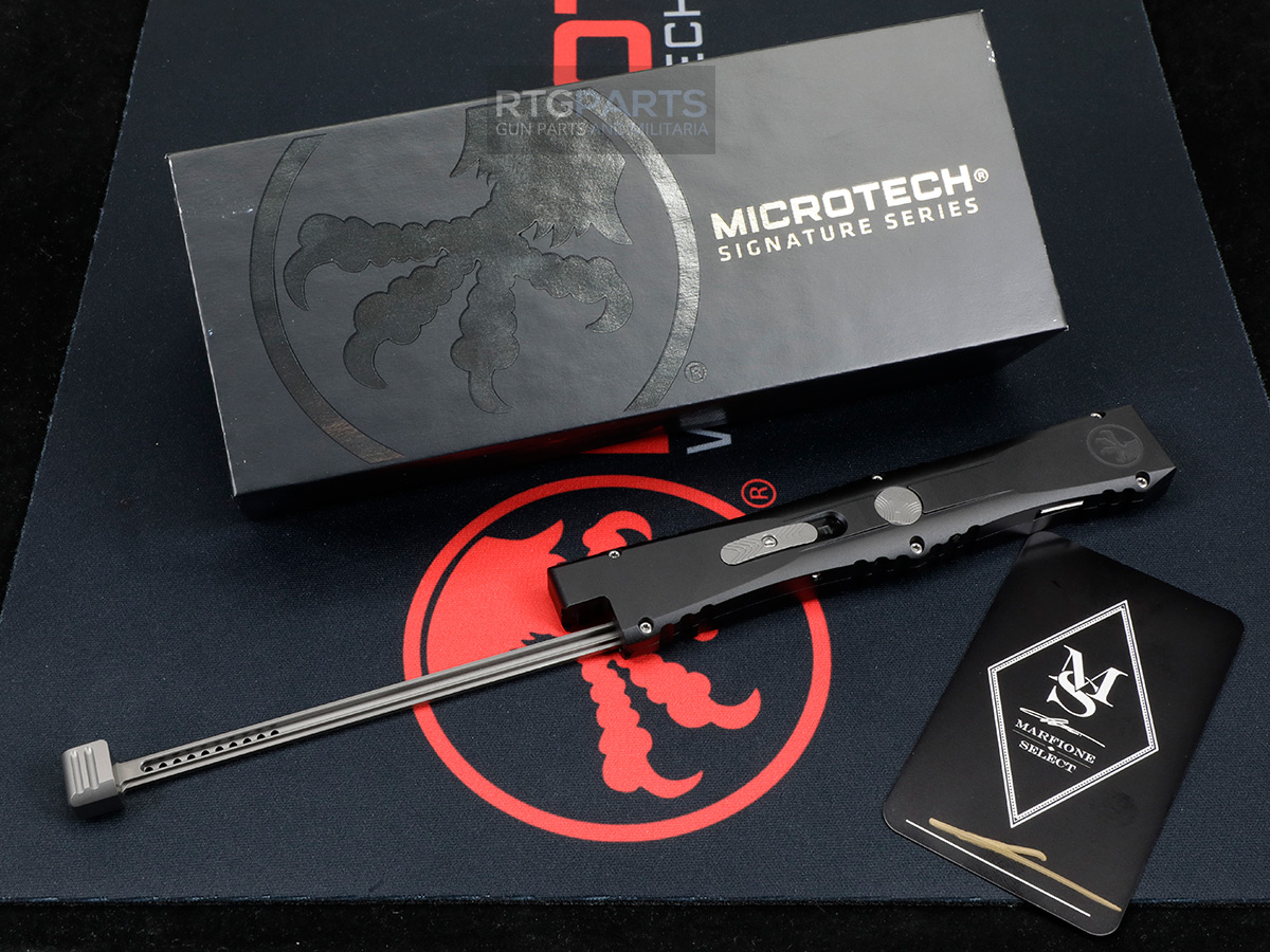 Microtech Marfione Select, Nemesis IV, Single Action Auto, 4.4" Double Edge MK390, Stonewash, Black Handle, Double Vapor Blast 17-4 Hardware, Made in the USA, 1152-10MS1