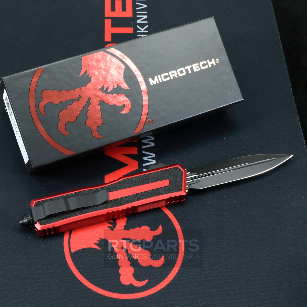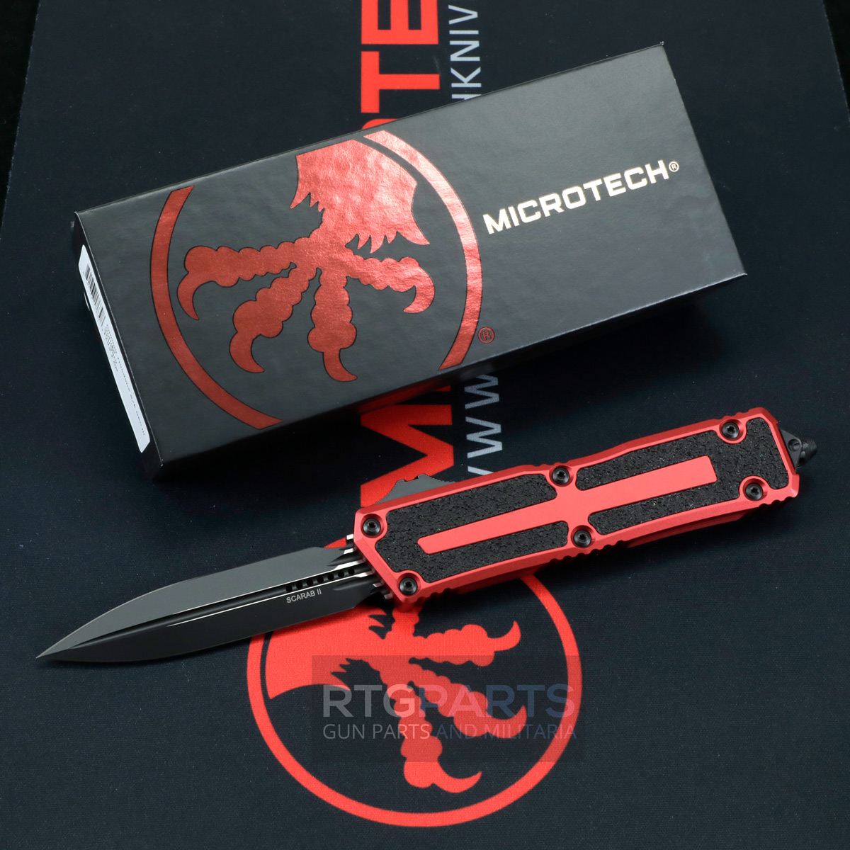 Microtech Scarab II Gen III, D/E OTF, Automatic Knife, Red, Black Blade, (3.9 Inch), Dagger, M390MK, Made in the USA, 1280-1RD