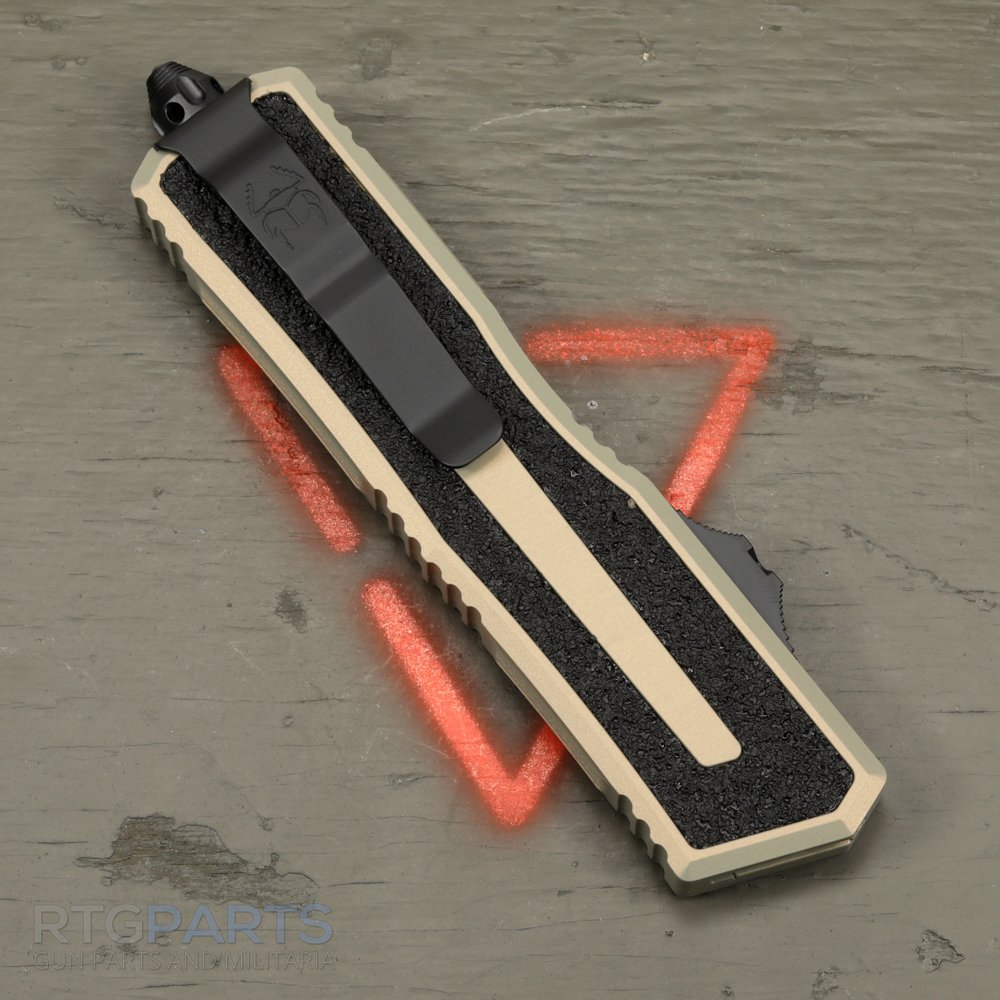 Microtech Scarab II Gen III, D/E-S OTF, Automatic Knife, Sand, Black Blade, (3.9 Inch), Double Edge Drop Point, M390MK, Made in the USA, 1180-1SN