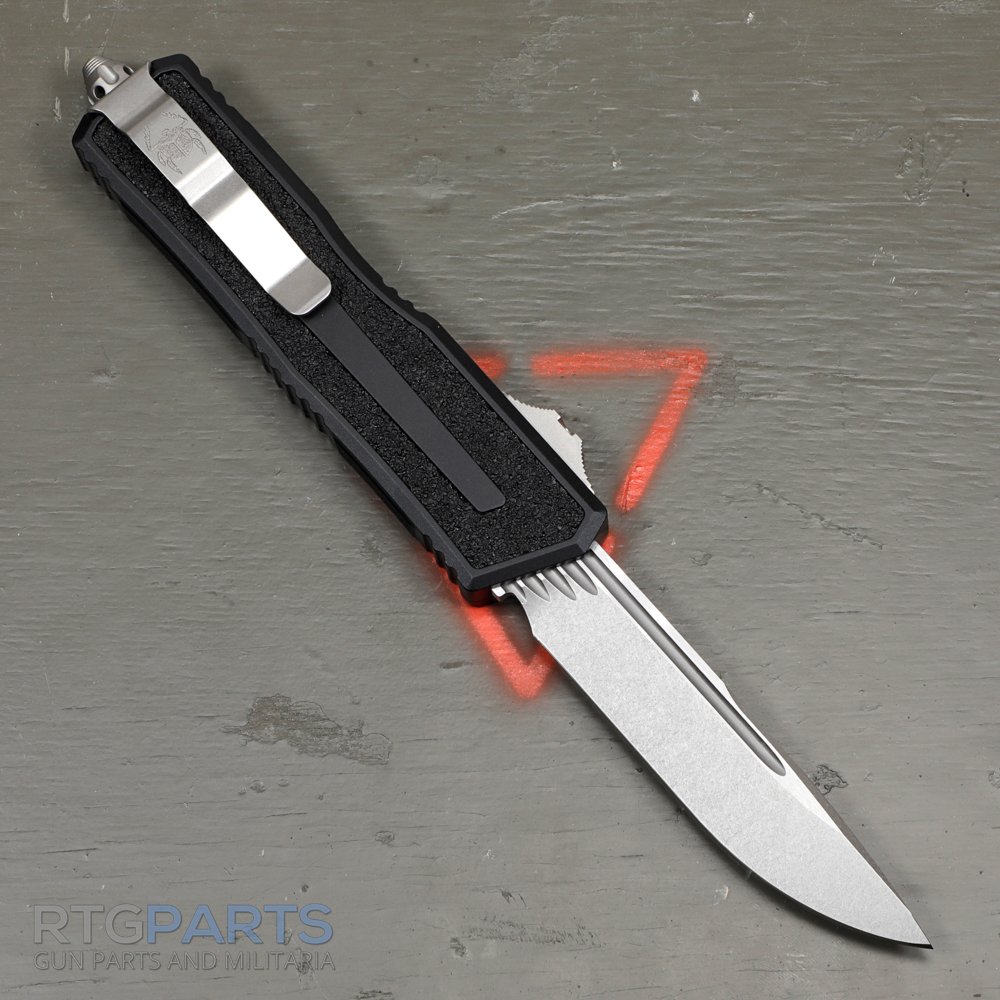 Microtech Scarab II Gen III, S/E OTF, Automatic Knife, Black, Stonewash, (3.9 Inch), Drop Point, M390MK, Made in the USA, 1278-10