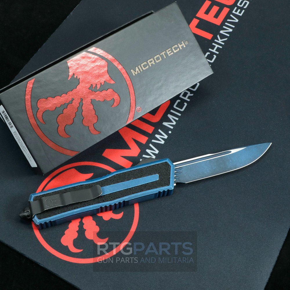 Microtech Scarab II Gen III, S/E OTF, Automatic Knife, Weathered Blue, 3.9 Inch, Drop Point, M390MK, Made in the USA, 1278-1WBL
