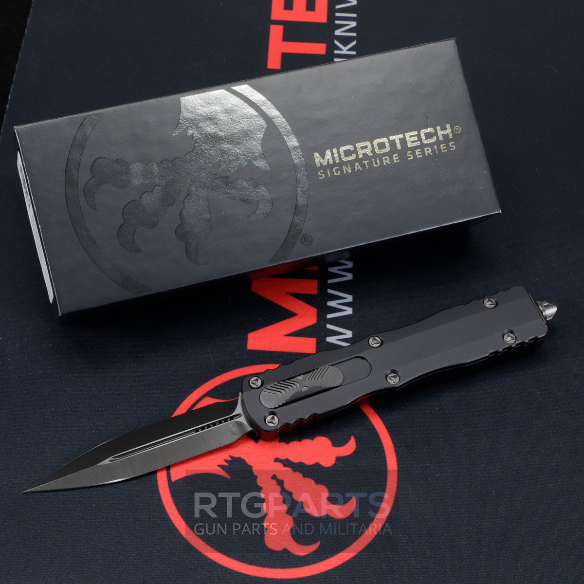 Microtech Signature Series, Dirac Delta, D/E OTF, Automatic Knife, Black DLC, 3.75 Inch, M390, Double Edge, Dagger, 100% Made in the USA, 227-1DLCTSH