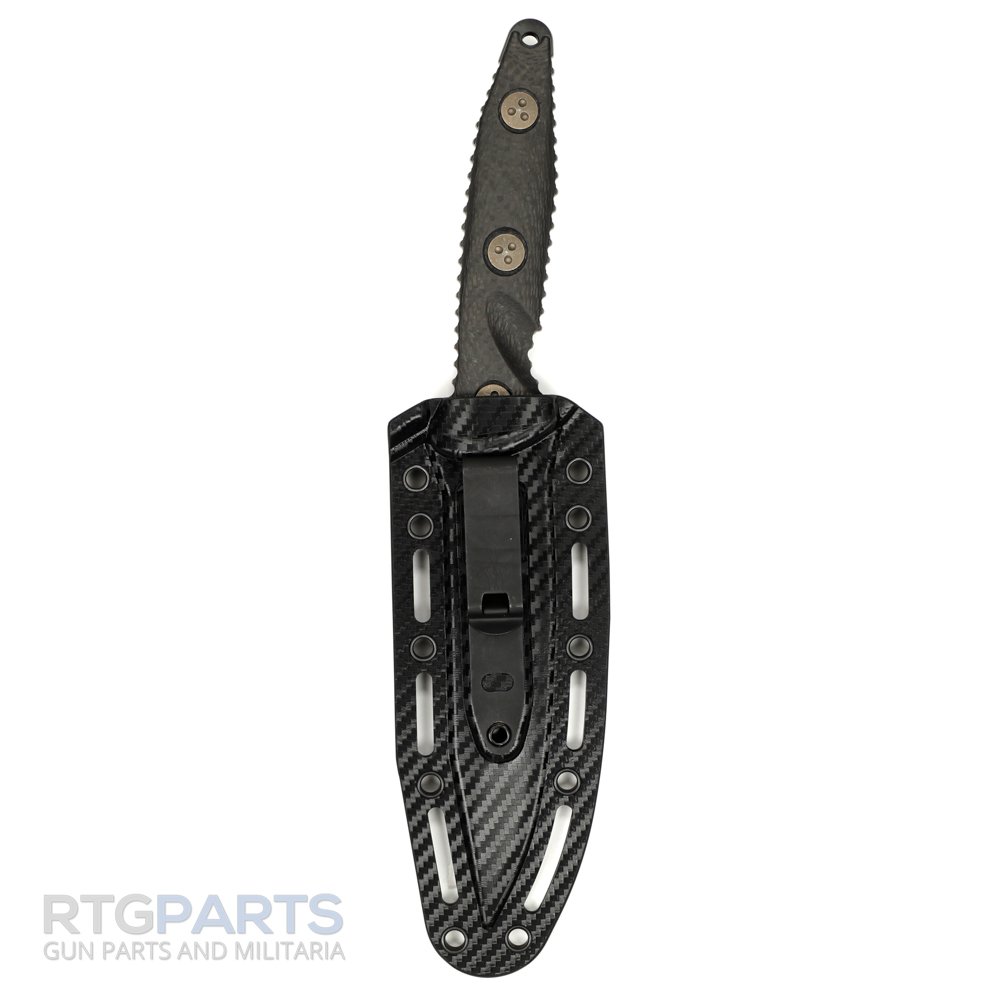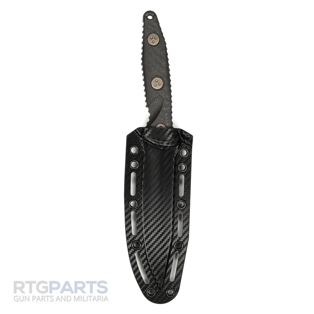Microtech Socom Alpha, S/E, Fixed Blade Knife, Black, (5.6 Inch), Clip Point, Sheath, Carbon Fiber, Bronze Hardware, Full Tang, M390, Combat Knife, Made in the USA, 113-1DLCCFS