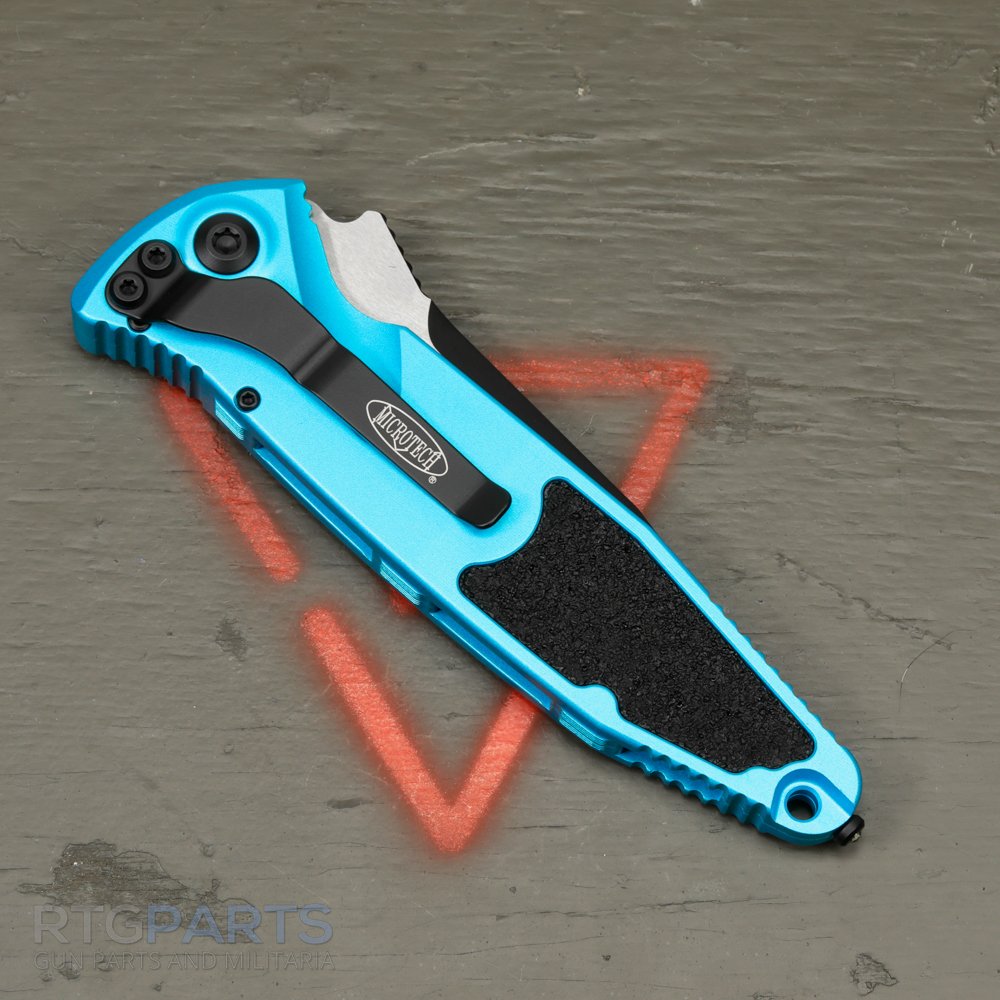 Microtech Socom Elite Auto, S/E, Auto Knife, Turquoise, (4 Inch), Tanto, Black Tactical Blade, M390, Combat Knife, Made in the USA, 160A-1TQ