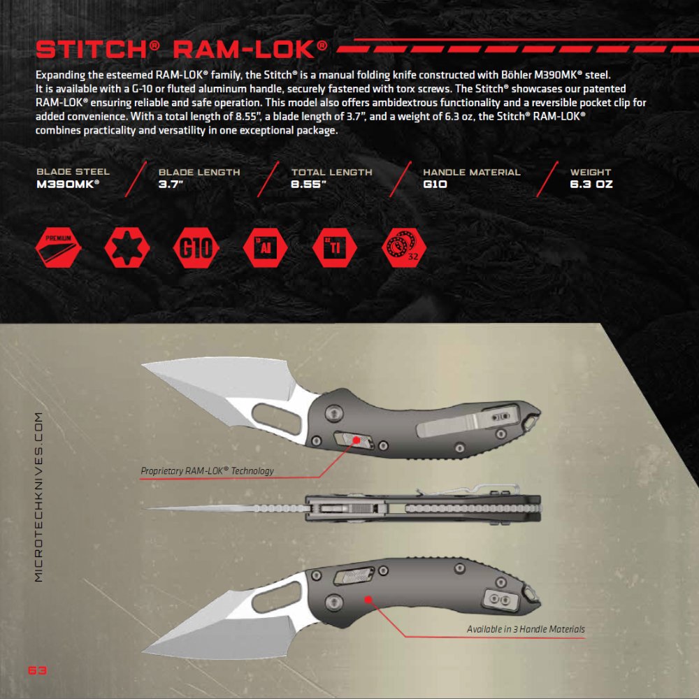 Introducing the Stitch Ram-Lok - a thrilling new take on the iconic Stitch Automatic knife from Microtech. What makes it stand out from the crowd is its exclusive blade, made of Bohler M390MK steel, which offers superior edge retention compared to standard Bohler M390 steel.