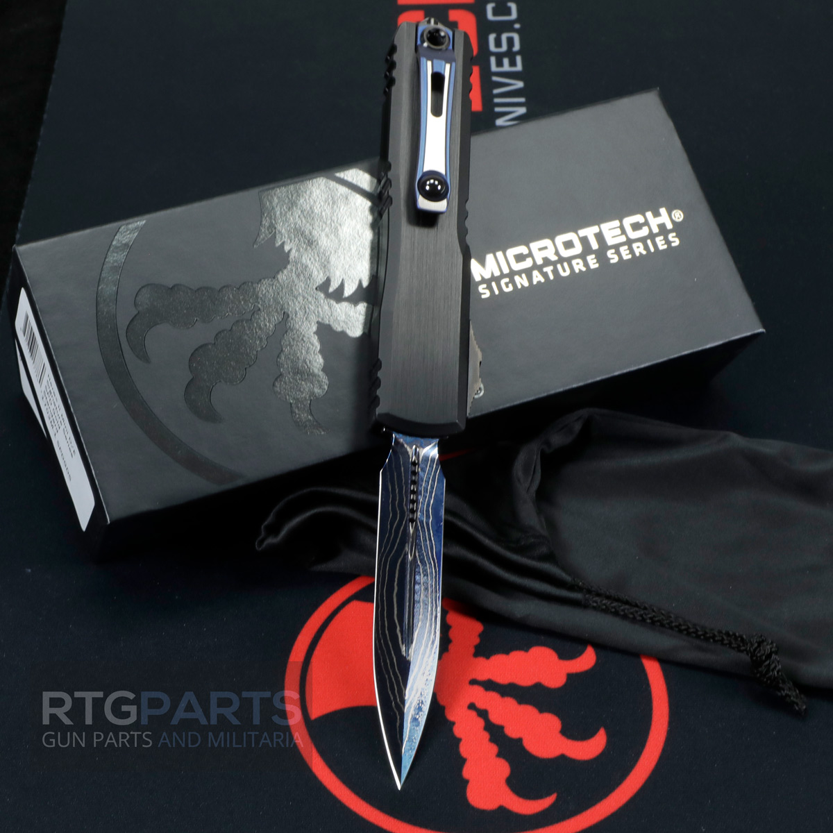 Microtech Ultratech Gen III ZBP, Marfione Select, Bake Forge, Icestorm Damascus, 3.5" Double Edge Dagger, Hefted Alloy, Hard Cut DLC Hardware & Blue Titanium Accents, Made in the USA, 1122-16MS2