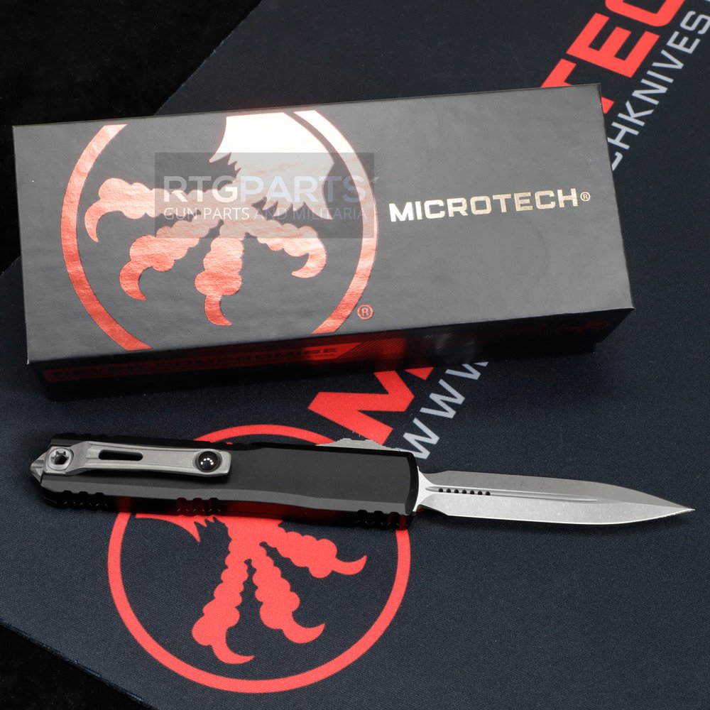 Microtech Ultratech Gen III Zero Blade Play, D/E OTF, Automatic Knife, Black (3.5 Inch), M390, Double Edge, Dagger, Apocalyptic, Made in the USA, 1122-10AP