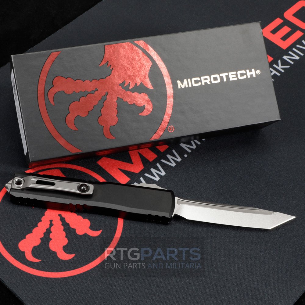 Microtech Ultratech Gen III Zero Blade Play, T/E OTF, Automatic Knife, Black (3.5 Inch), M390, Tanto, Stonewash, Made in the USA, 1123-10