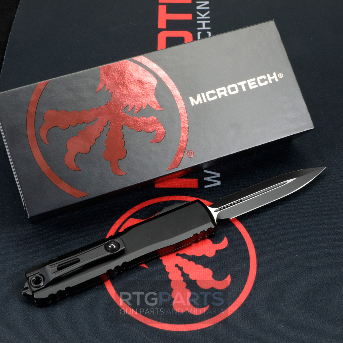 Microtech Ultratech Gen IV (Non ZBP), D/E OTF, Automatic Knife, Black (3.5 Inch), M390, Double Edge / Dagger, Full Serrate, Tactical Black, Made in the USA, 11224-3T