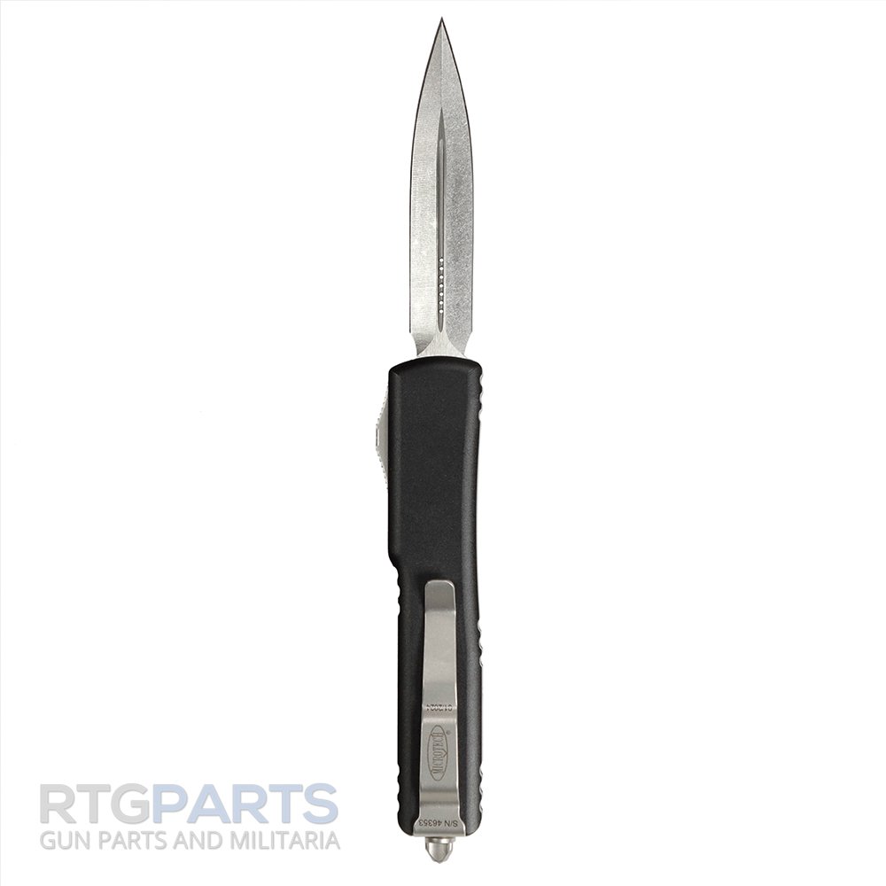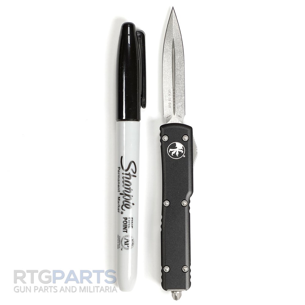 Microtech UTX-70 D/E OTF Automatic Knife, Black, 2.4 Inch, Stonewash, OTF, Flat Grind, Dagger, Glass Break, EDC Knife, 147-10