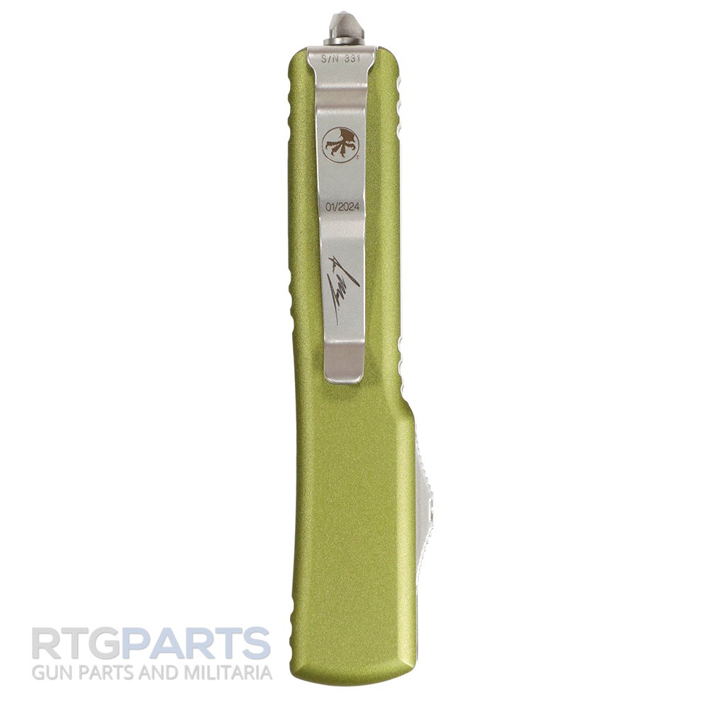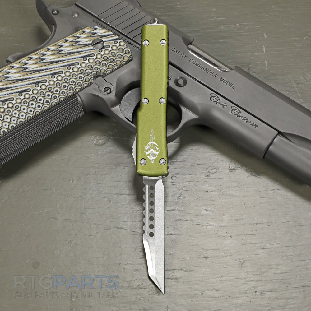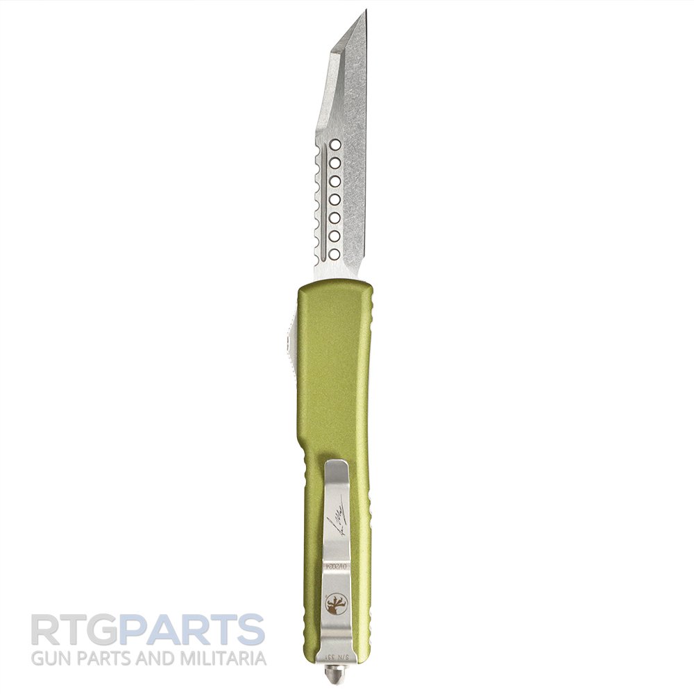 Microtech UTX-70 Warhound OTF Automatic Knife, OD Green, 2.4 Inch, Stonewash, OTF, Flat Grind, Glass Break, EDC Knife, 419W-10ODS