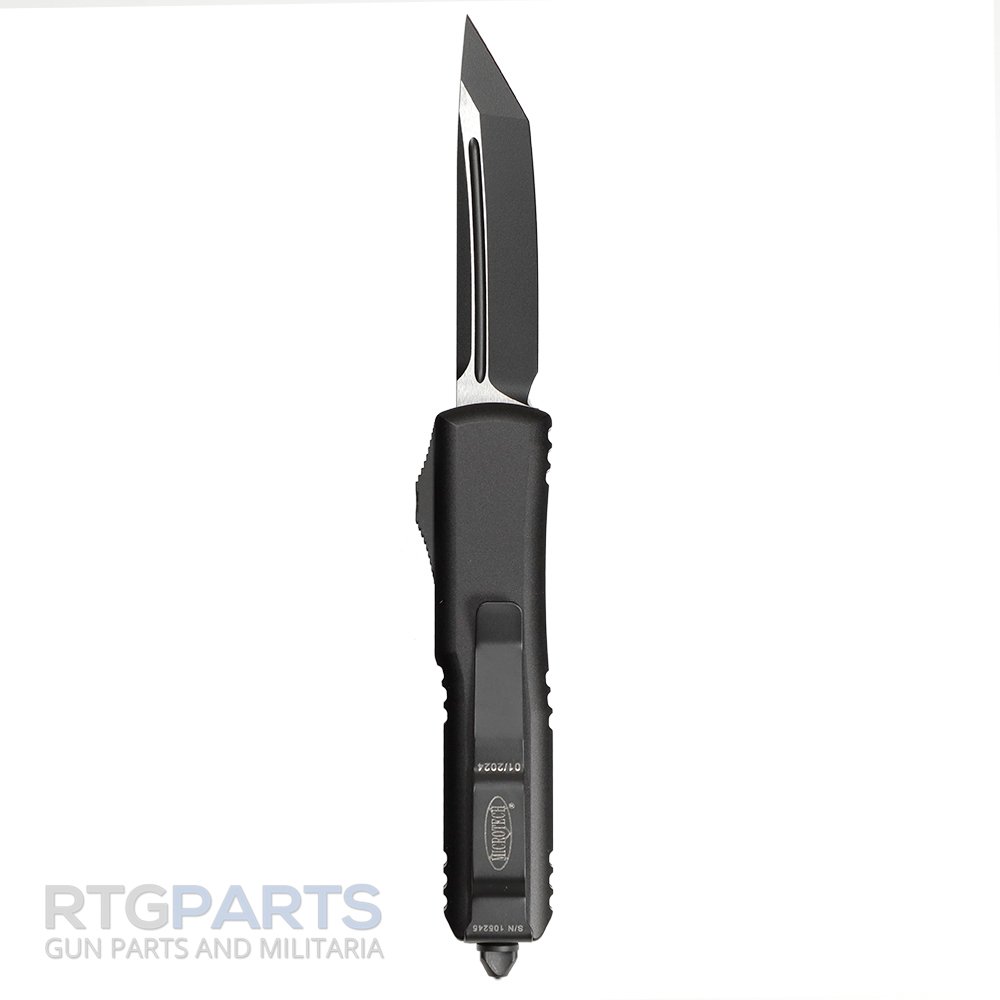 Microtech UTX-85 T/E OTF Automatic Knife, Tactical, 3.125 Inch, Black, OTF, Tanto, Flat Grind, Glass Break, EDC Knife, 233-1T