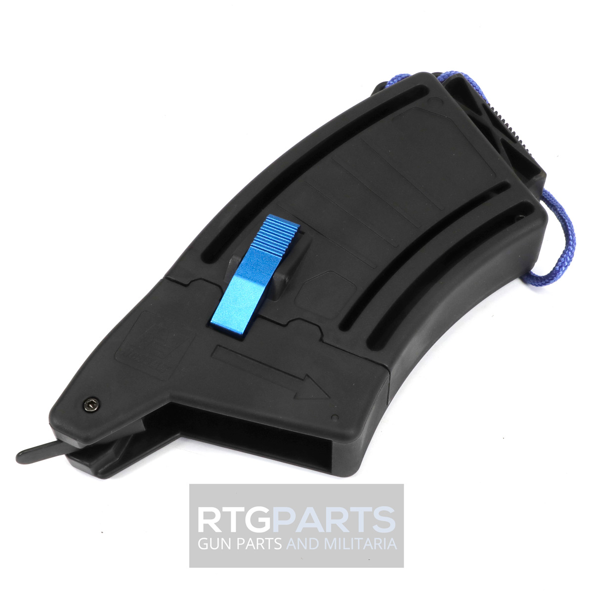The AK Speed Loader Version 2 is designed for AK 7.62X39mm type magazines. The AK Speed Loader will load magazines with AK 10 round stripper clips (NcSTAR AAKC AK stripper clips) or you can load up to 10 individual 7.62X39mm cartridges at a time onto the ammo tray, which is accessible from a sliding tray door. AK type magazines (both polymer and metal mags) securely attach to the AK Speed Loader via a spring loaded metal magazine catch & release lever.
