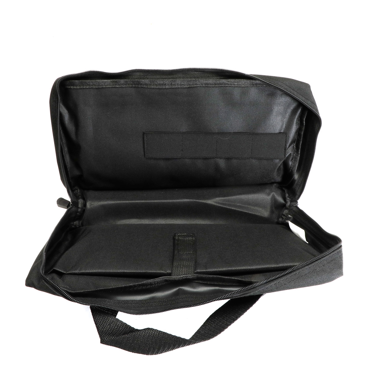 US PeaceKeeper pistol cases are manufactured to the highest quality standards with 1" padding" double-stitched for durability" and heavy duty #8 zippers. Brushed Tricot liner protects the handgun finish. The D-ring allows this case to be a lockable case. Made of 600 Denier water-resistant fabric.