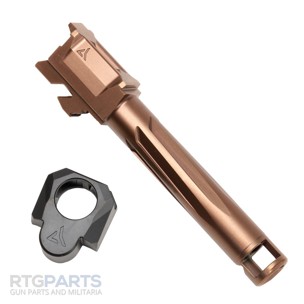 Radian Weapons, RAMJET Barrel, AFTERBURNER Compensator, 9MM, DLC Finish, Bronze and Black, INTRA-LOK Mounting System, Fits Glock 19 Gen3