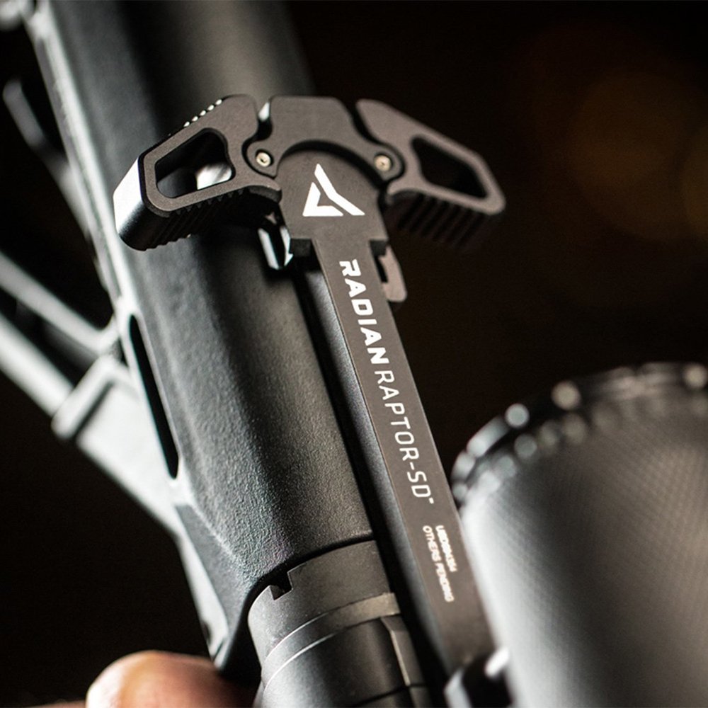 The suppressor-optimized Raptor-SD features a ported shaft designed to redirect gasses down and forward, away from the shooter’s face when shooting suppressed. Its ambidextrous design allows rapid palm "blading" or finger-thumb charging of the weapon, ensuring the motion is fluid and fast from either strong or support side. The Raptor-SD is compatible with most AR15/M16-pattern rifles.