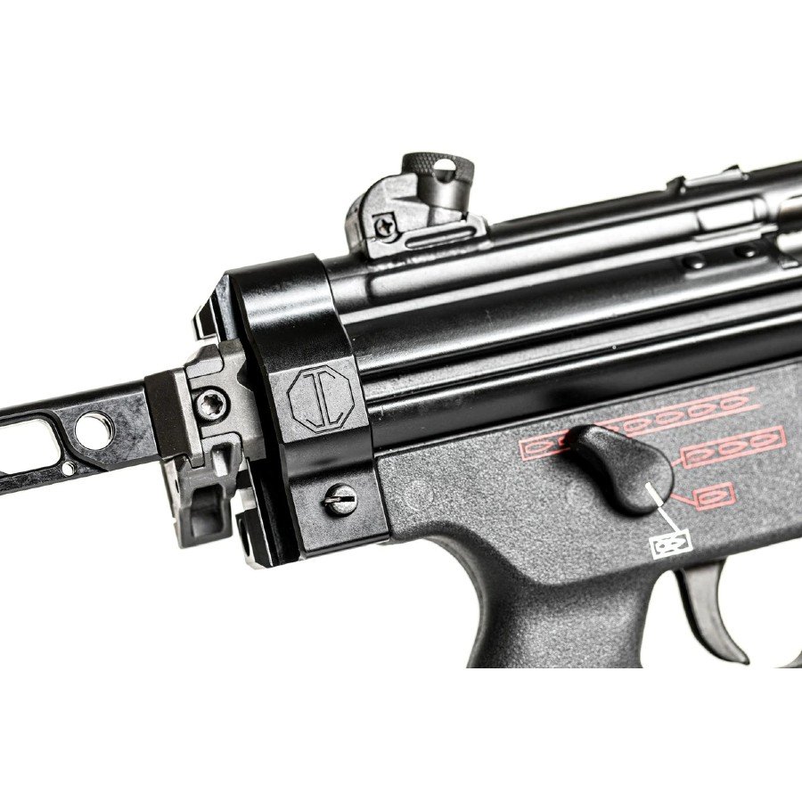 This adapter will fit the Standard/Full Size MP5 as well as HK33 (556). It has a picatiny rail machined on the rear which allows you to install 1913 style stocks/braces!