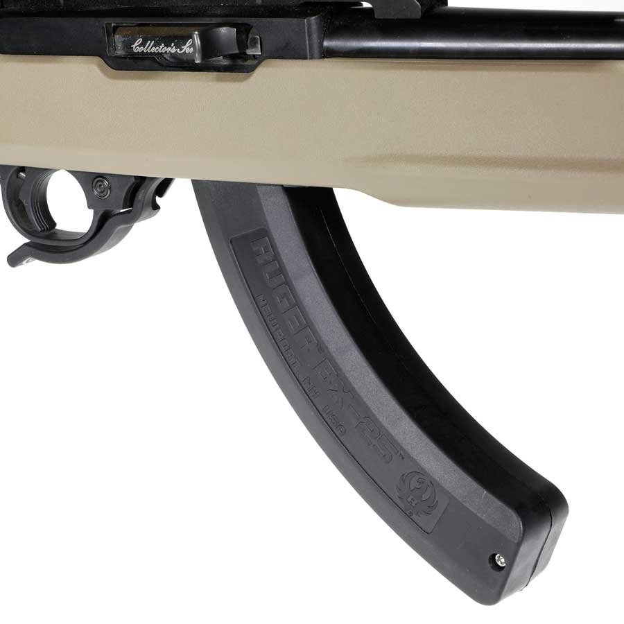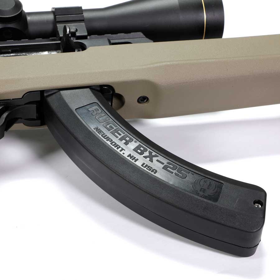 This genuine Ruger factory magazine with Ruger logo has been tested and has proven to feed as reliably as the standard BX-1 10-round Ruger rotary magazine. BX-25 magazines will work with any factory original 10/22 Rifle, SR-22 Rifle, 22 Charger Pistol, .22 LR Ruger American Rimfire Rifle and .22 LR Ruger 77/22 Rifle.