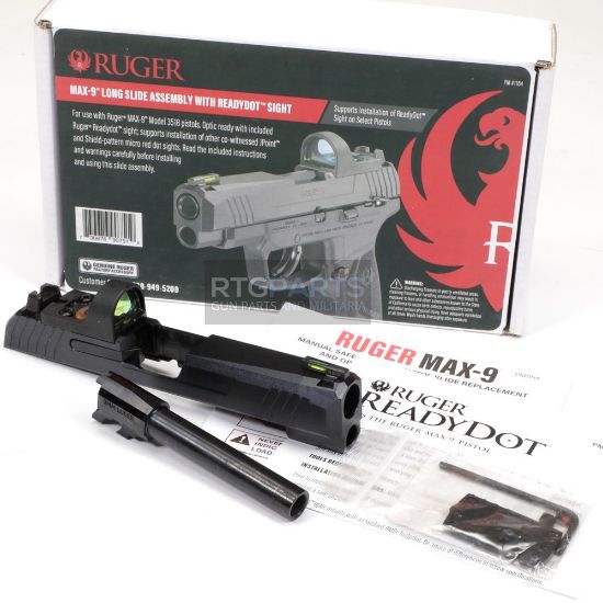 This MAX-9 Long Slide Assembly with ReadyDot Sight allows for installation of micro red dot optics on MAX-9 pistols. This Slide Assembly comes equipped with a ReadyDot micro reflex light-gathering fiber optic red dot sight already installed. It also comes turnkey with all sights, 4" barrel, extractor and other slide components to simplify installation using the included installation instructions (attached below). Read the included instructions and warnings carefully before installing and using this slide assembly. This Genuine Ruger Factory Accessory is made in the USA.