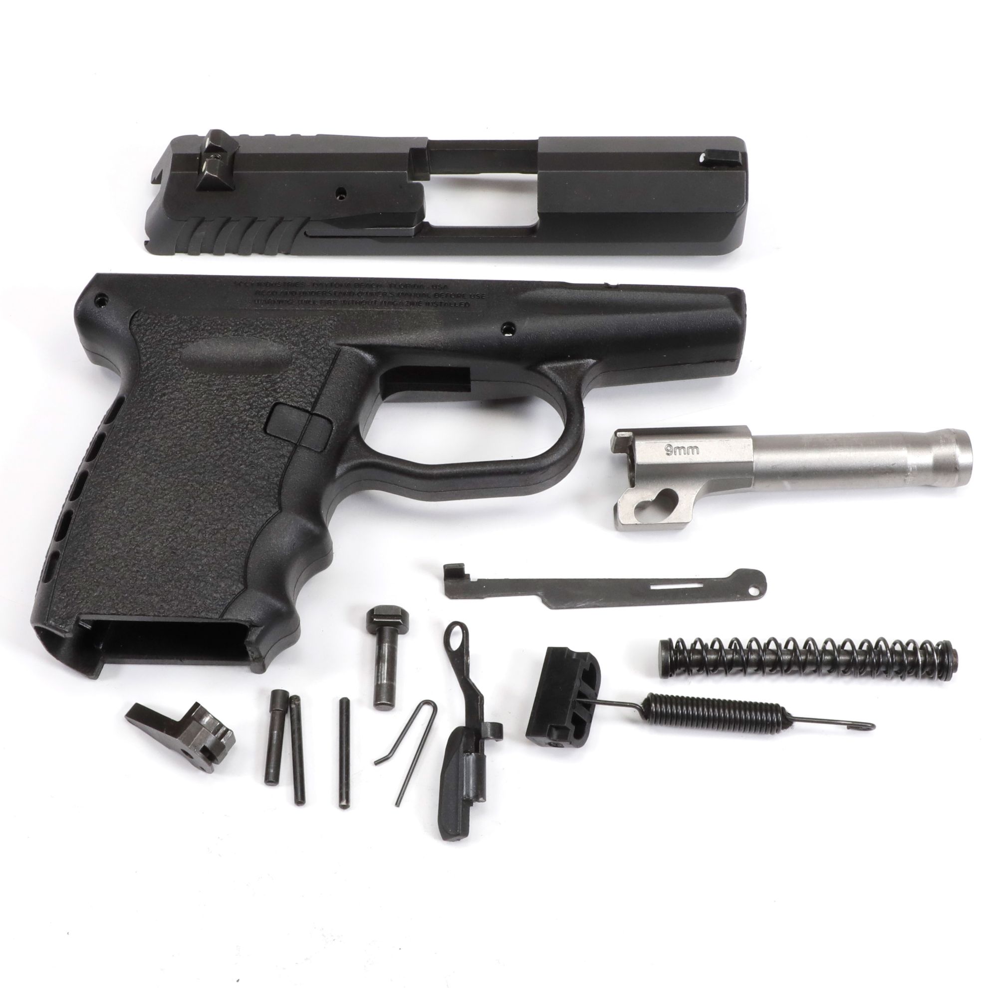 SCCY CPX-2 SS PARTS KIT. Nice clean kit. Appears to be a complete slide assembly with barrel and recoil spring, and a bunch of slide parts.