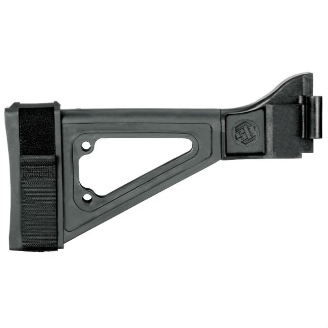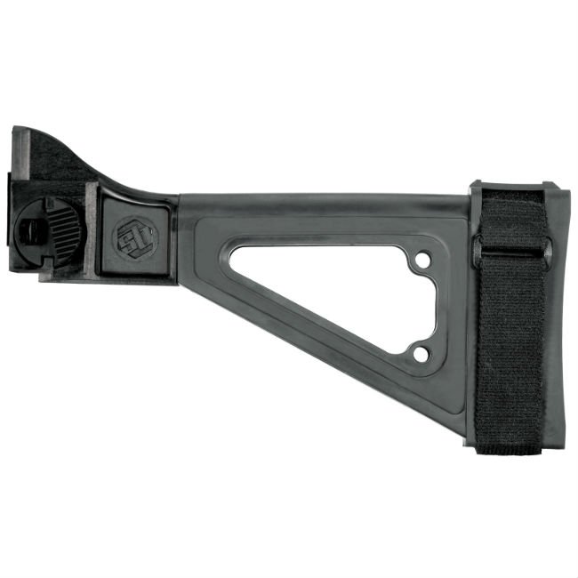 A skeletonized, black version of the SBT Pistol Stabilizing Brace, the SBTi enhances your B&T APC or HK UMP with an integral, side-folding mechanism. The SBTi variant also allows you to customize the look of your platform equipped with any compatible SBT adapter (CZ Scorpion, CZ Bren 805, HK MP5, HK MP5K, etc.)