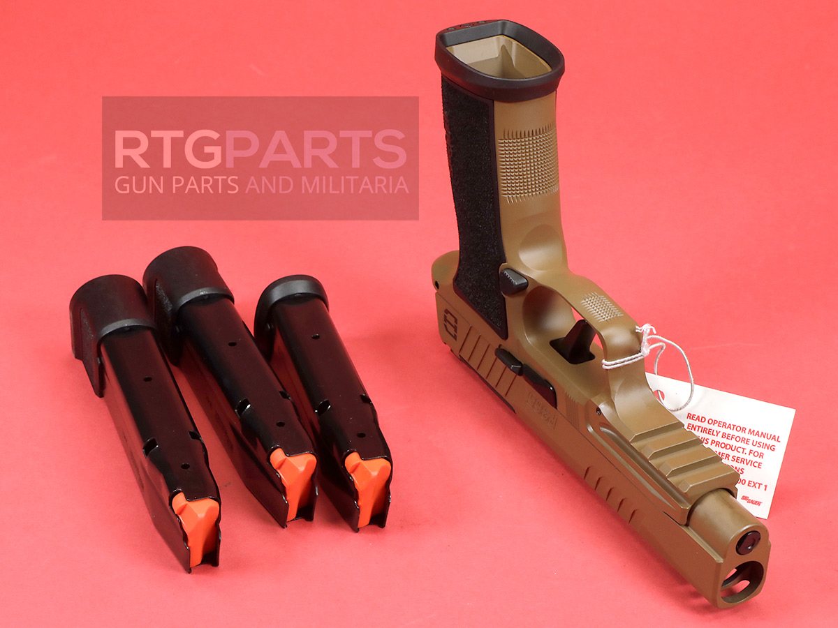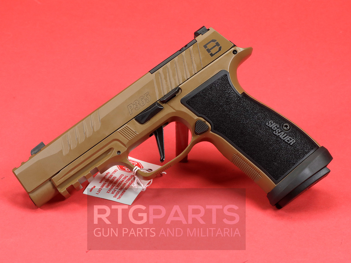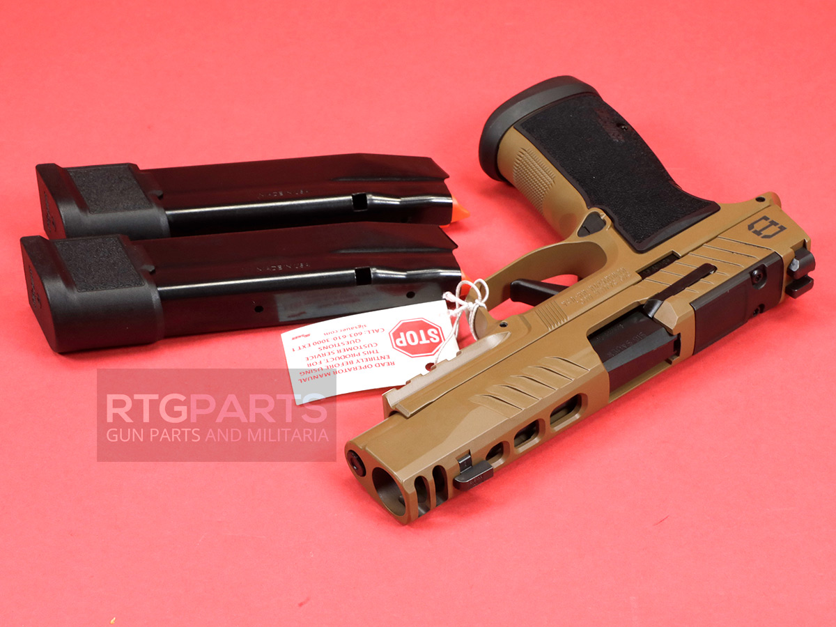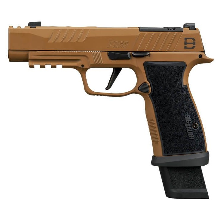 The stainless steel slide incorporates custom DH3 serrations and lightening cuts, finished in durable Coyote Cerakote for both visual distinction and field durability. An optic-ready SIG-LOC compact footprint allows seamless integration of modern red-dot optics, while X-RAY3 day/night sights provide rapid target acquisition across lighting conditions.