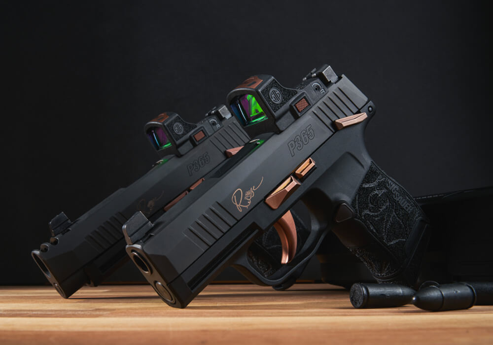 Sig Sauer, P365XL ROSE, Semi-automatic, Striker Fired, Polymer Frame Pistol, Sub-compact, 9MM, 3.1" Barrel, Nitron Finish, Black, Rose Gold Accents, ROMEO-RS Sight, X-RAY3 Day/Night Sights, Polymer Grips, Manual Safety, 12 Rounds, 2 Magazines