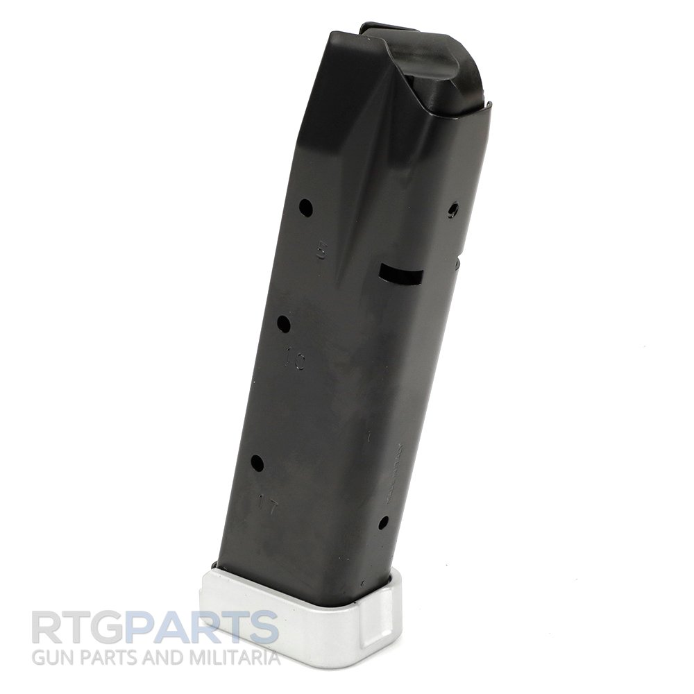 Sig Sauer P226 9mm 19rd Extended Anti-Friction Magazine with aluminum baseplate. Manufactured by Mec-Gar in Italy. You will not find a nicer quality magazine. Mec-Gar is an OEM magazine manufacturer for dozens of firearms manufacturers.
