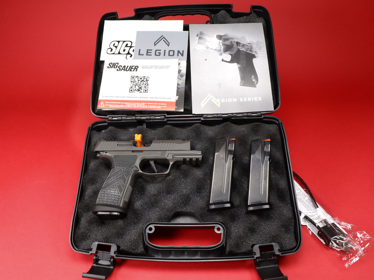 This is one of the nicest shooting pistols, at any price. Introducing the fantastic Sig P365 AXG Legion 9mm. New in box with (3) 17rd mags, night sights, light rail oprics ready and compensated. Factory fresh and current production, Sig part number 365AXGCA-9-LEGION