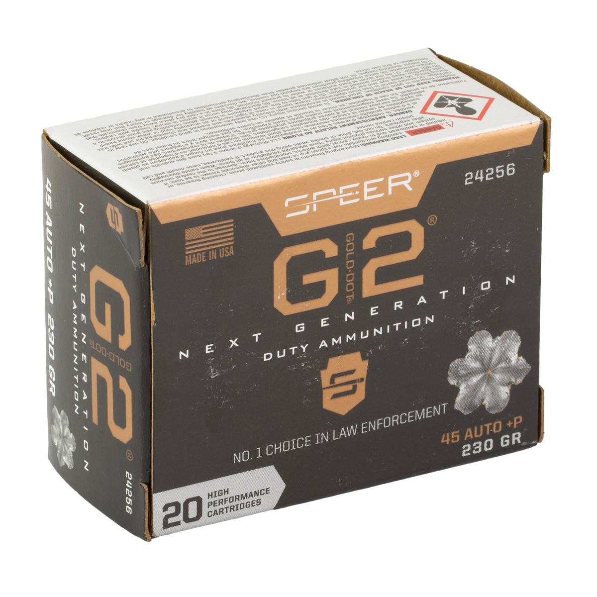 Speer Ammunition, Gold Dot G2, 45 ACP, 230 Grain, Gold Dot Hollow Point, 20 Round Box
