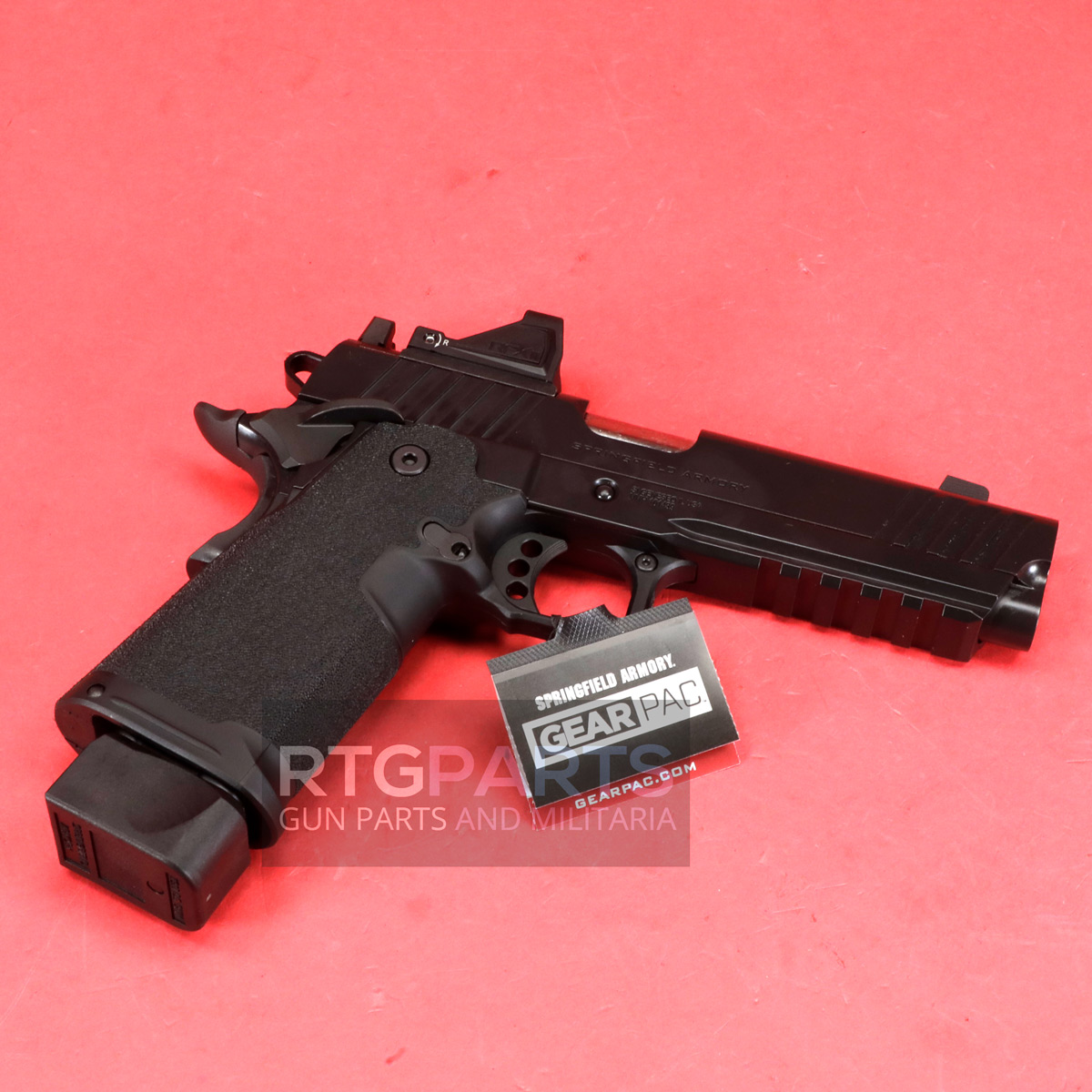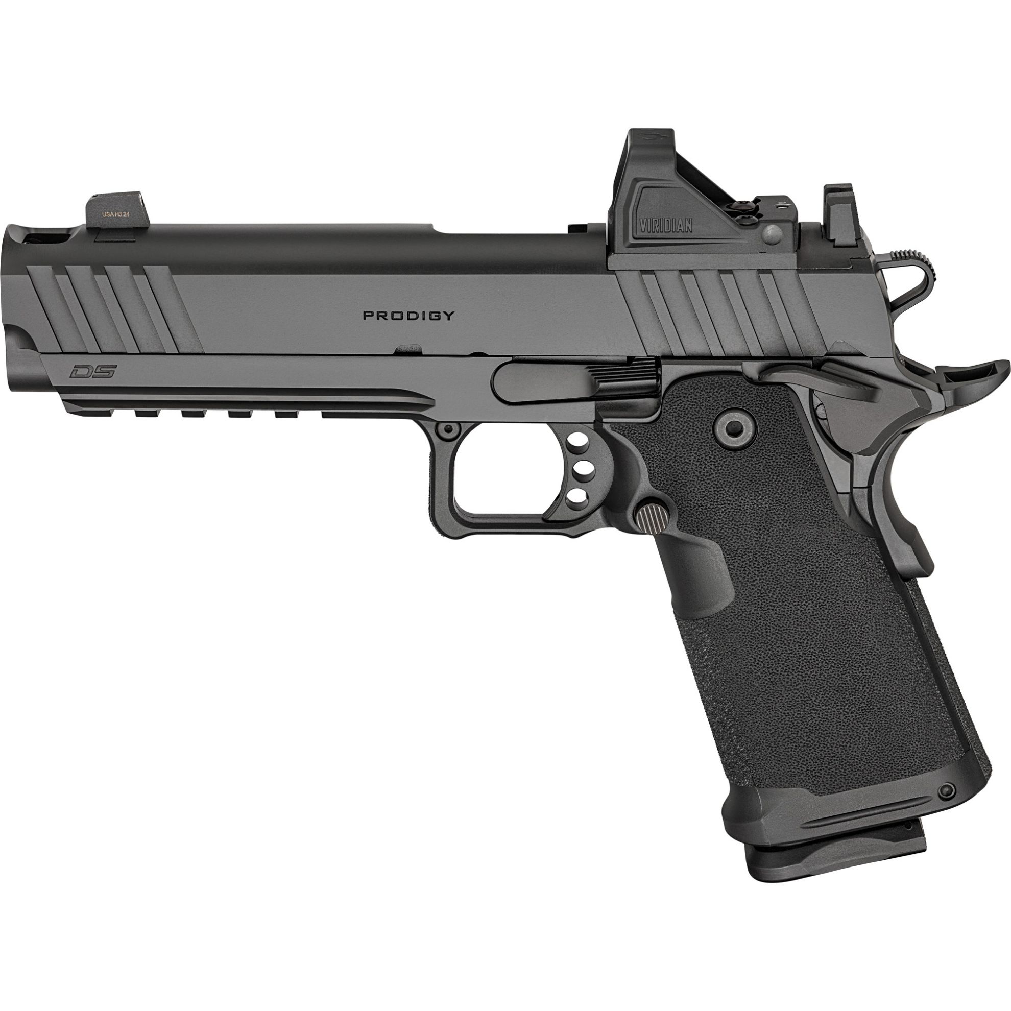 Springfield, 1911 DS Prodigy Comp, Semi-automatic, Metal Frame Pistol, Full Size, 9MM, 5" Forged Stainless Steel Bull Barrel, Forged Carbon Steel Frame, Cerakote Finish, Black, Polymer Grips, Tritium Front and Black Serrated Rear Sights, Optics Ready, Ambidextrous Safety, Integral Compensator, Viridian Green Dot, 4 Magazines, (1)-20 Round Magazine and (3)-17 Round Magazine, Includes Range Bag