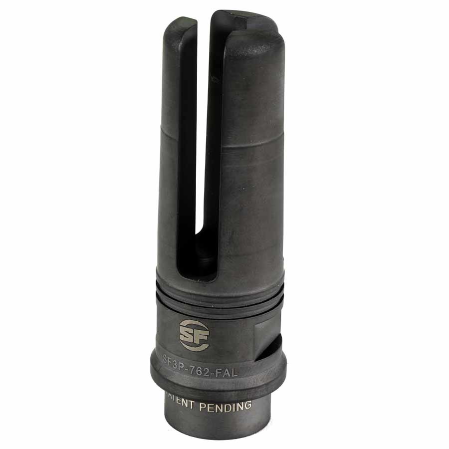 Surefire 3 Prong Flash Hider/Suppressor Adapter for FAL. Surefire Accessories are built to the highest standards to support you in the field or at home. When you purchase Surefire, you own the best. The advanced SureFire SF3P-762-FAL three-prong flash hider, which fits the FN FAL rifle and variants with identical muzzle threads, features a patent-pending design that greatly reduces muzzle flash, typically greater than 99%, when compared with a plain muzzle. Boasting robust tines built to withstand the rigors of combat, the SF3P-762-FAL also serves as a rock-solid mounting adapter for SureFire SOCOM Series 7.62 mm Fast-Attach suppressors, the SOCOM762-RC model having recently won the Mk13 .300 Win-Mag sniper rifle contract award with the US Special Operations Command in the most extensive and rigorous suppressor testing ever conducted.